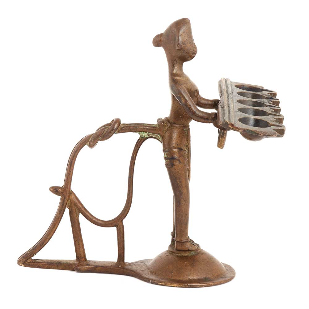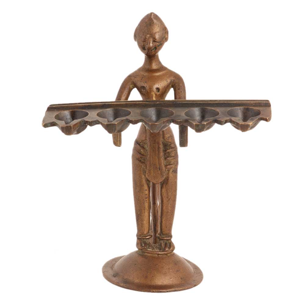 Handmade Brown Brass Lady Holding Five Faced Oil Lamp