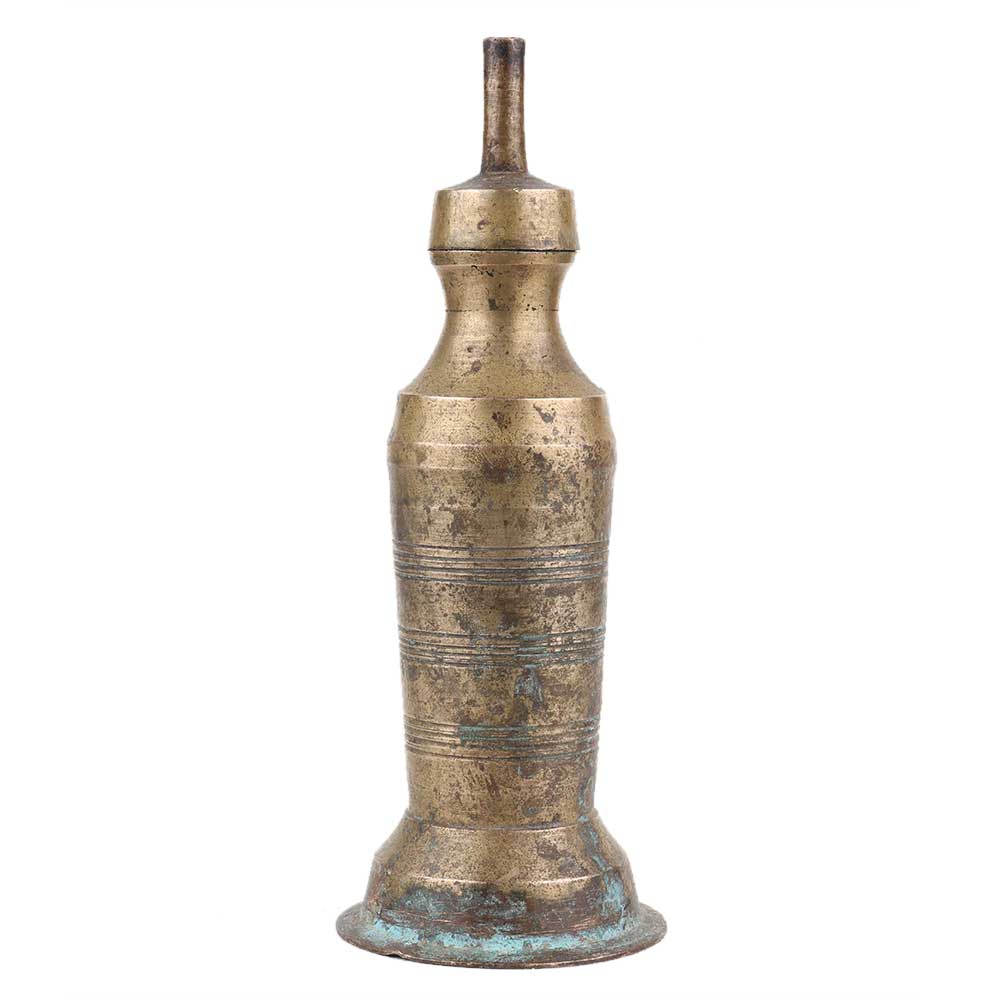Handmade Brown Brass Oil Lamp In Cylindrical Shape Rare Artifact
