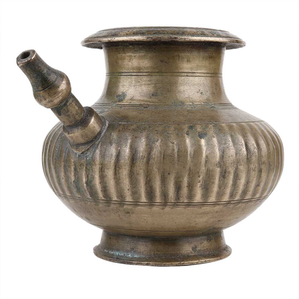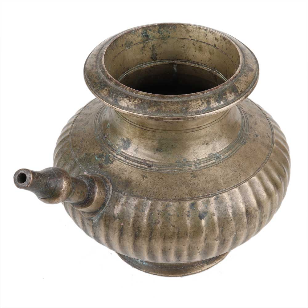 Handmade Brown Brass Pot With Spout Indian Holy Water Vessel