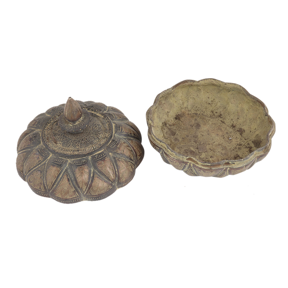 Handmade Brown Brass Pumpkin Storage Box With Geometric Design And Knob Finial