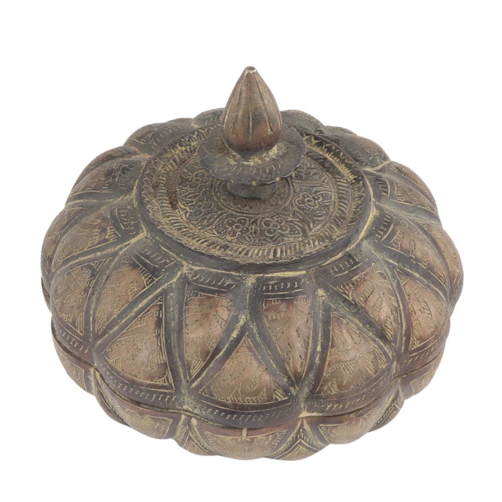 • Handmade Brown Brass Pumpkin Storage Box With Geometric Design And Knob Finial