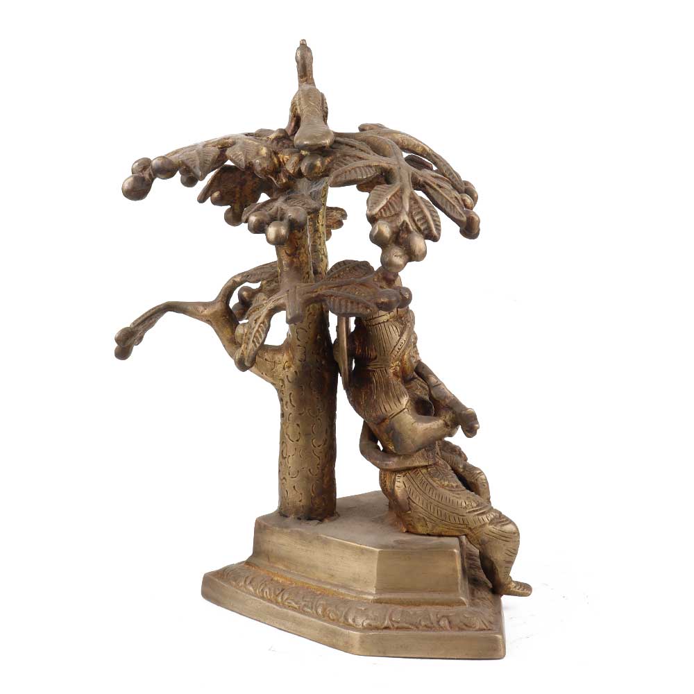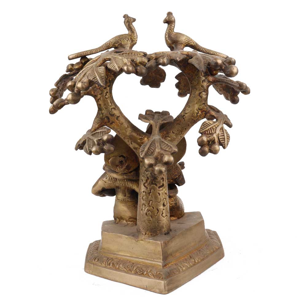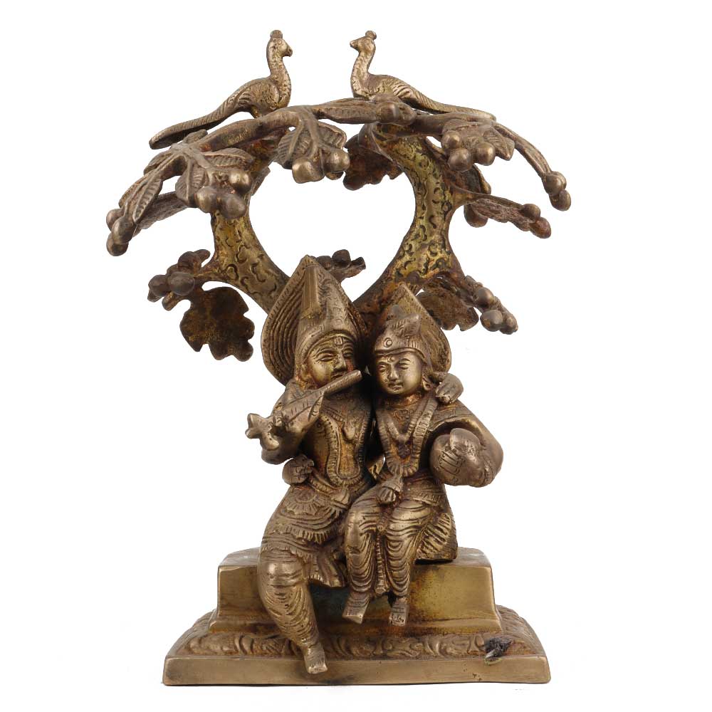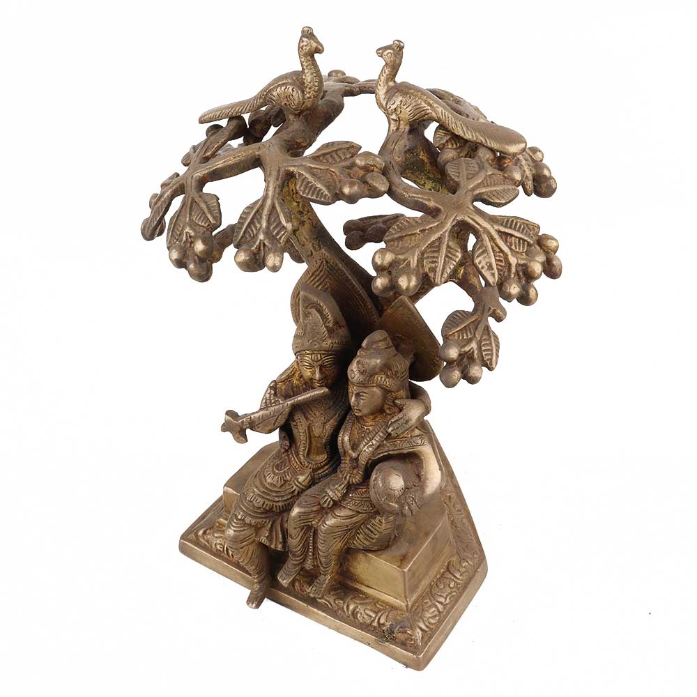 Handmade Brown Brass Radha Krishna Statue Under Kadam Tree