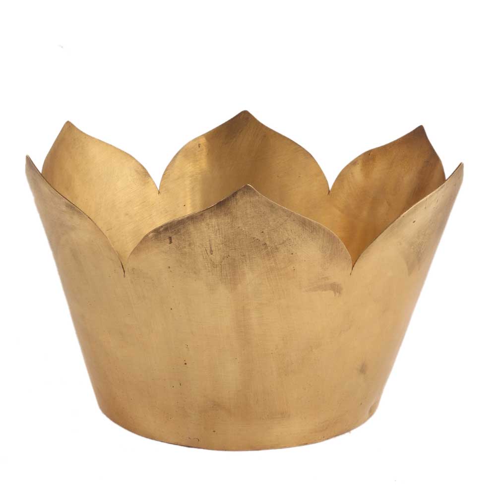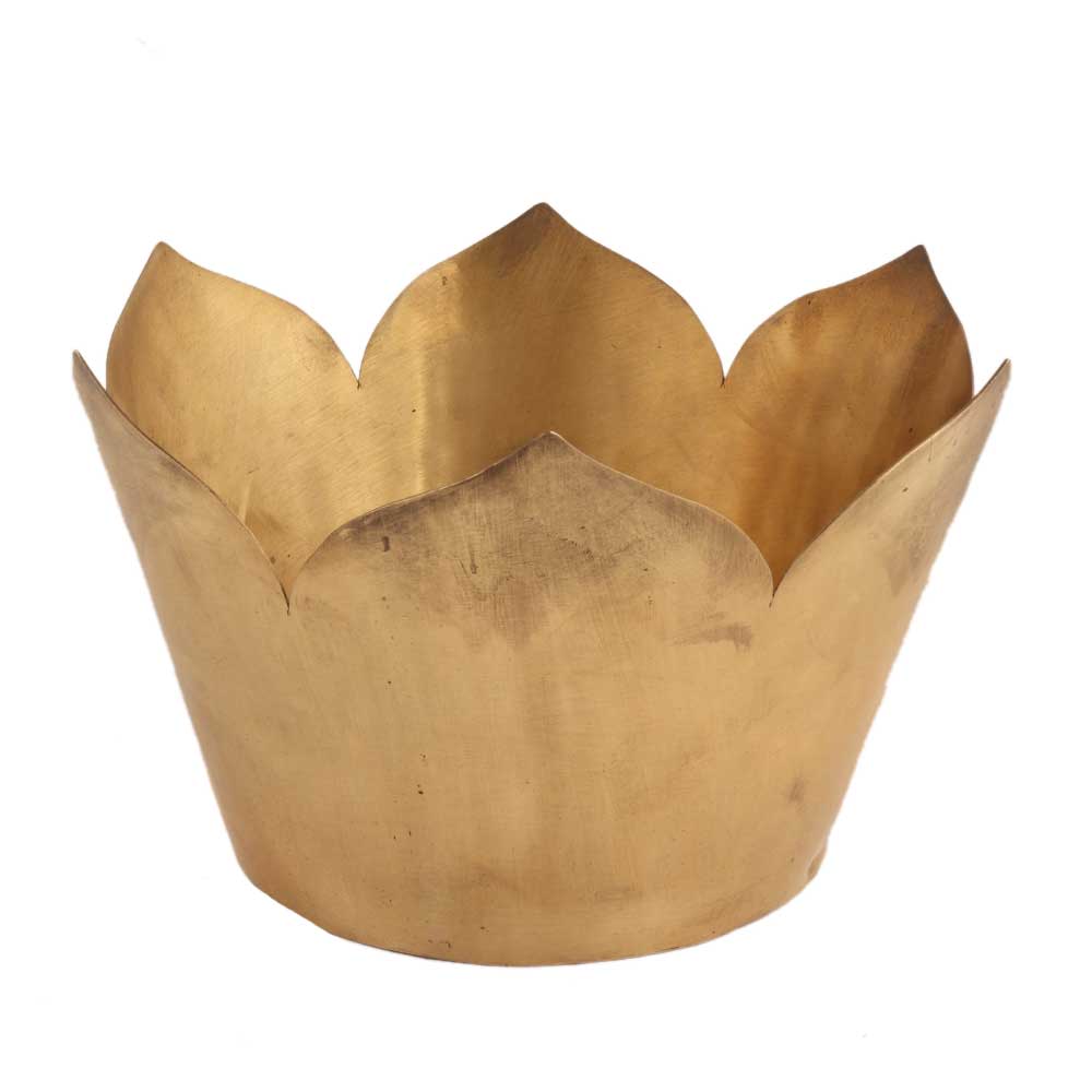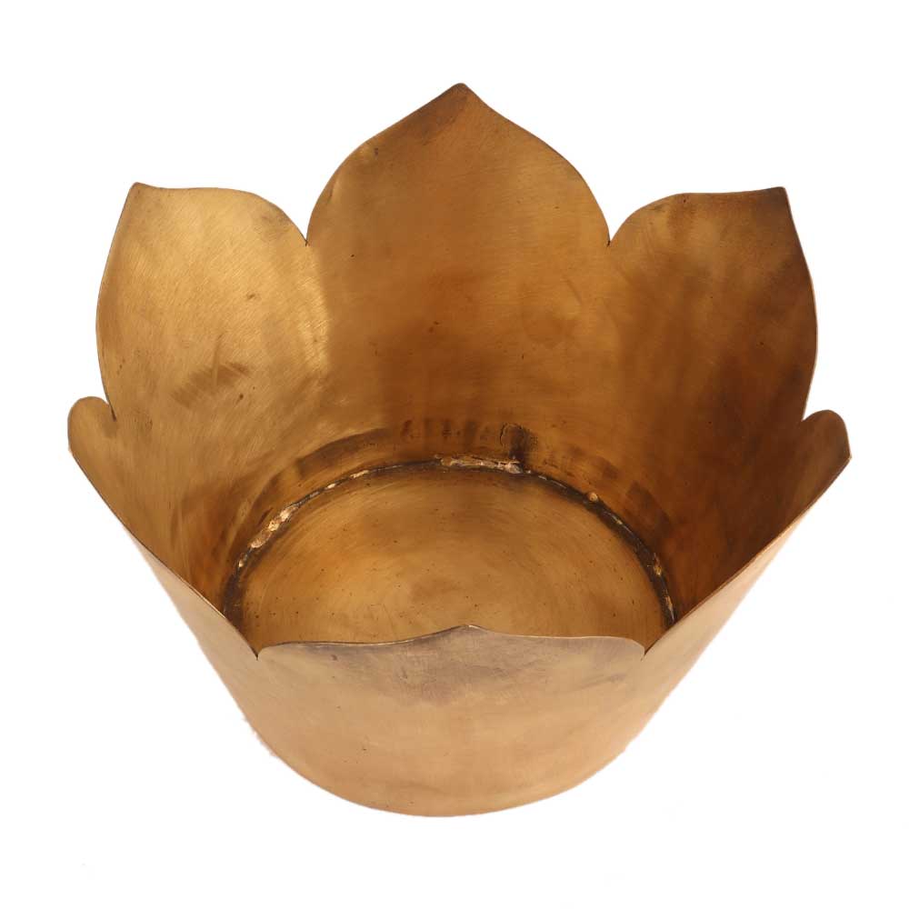 • Handmade Brown Brass Round Lotus Shape Flower Pot
