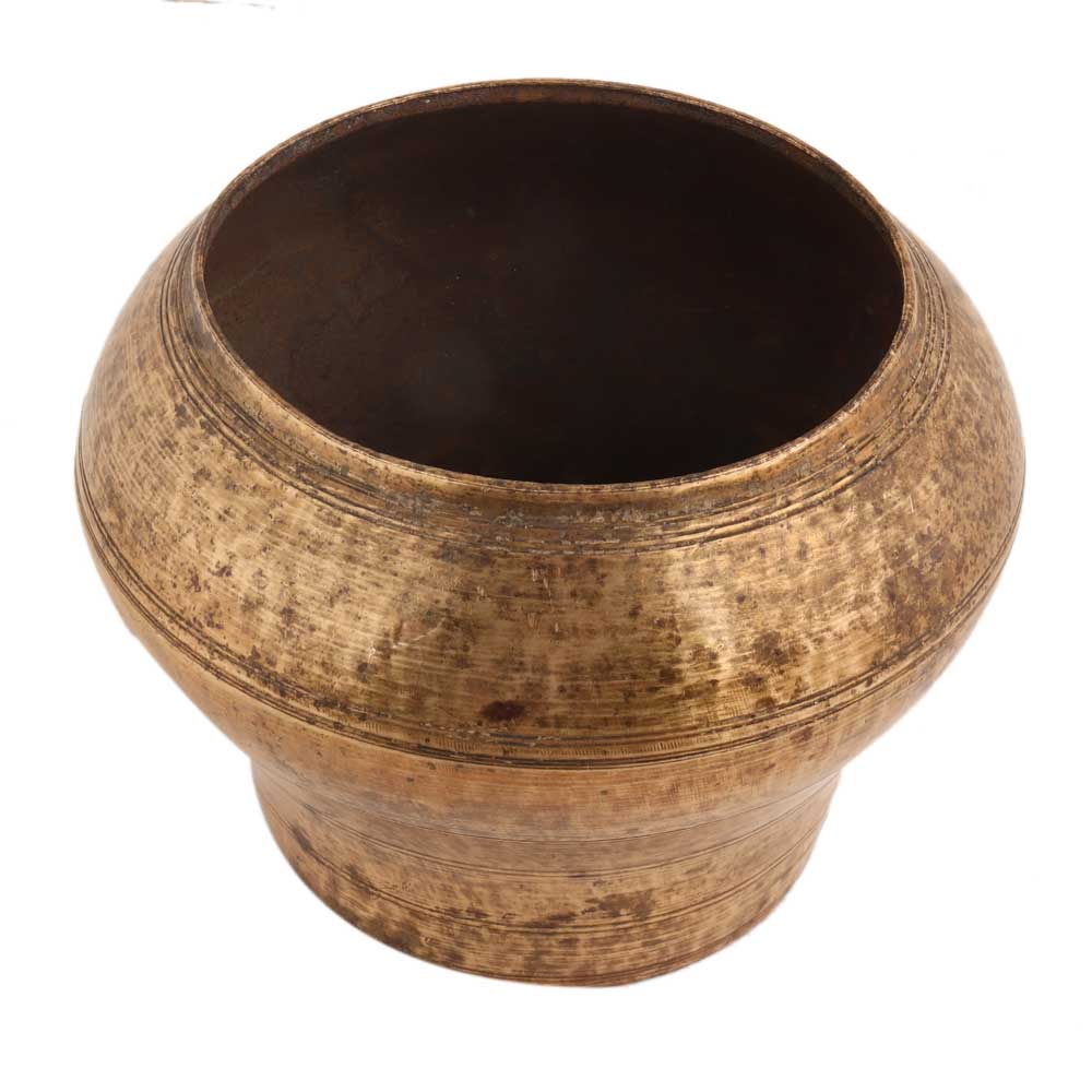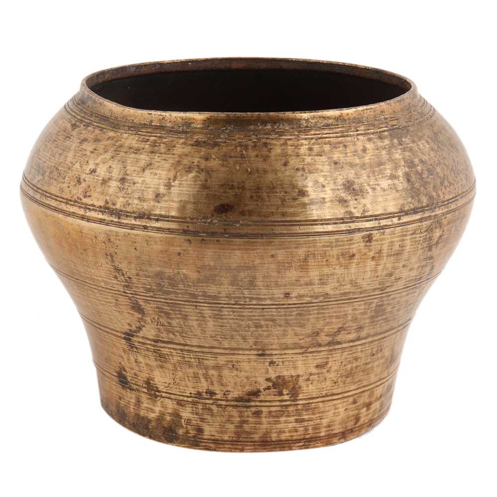 This rustic-looking handmade brass flower pot or vase can be filled with flowers, leaves of big trees, bamboo sticks and placed welcomingly at the house entrance.