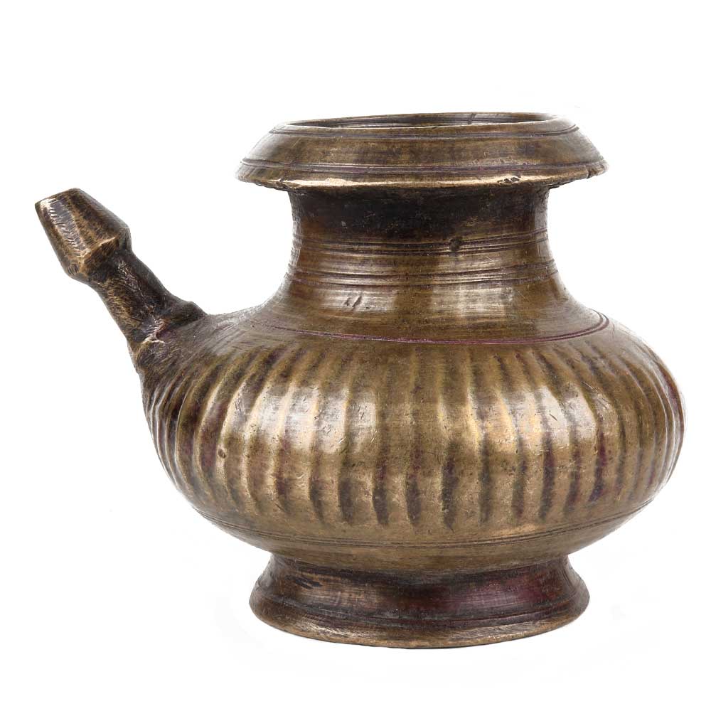 • Handmade Brown Brass Water Pot with Spout for Daily Worship