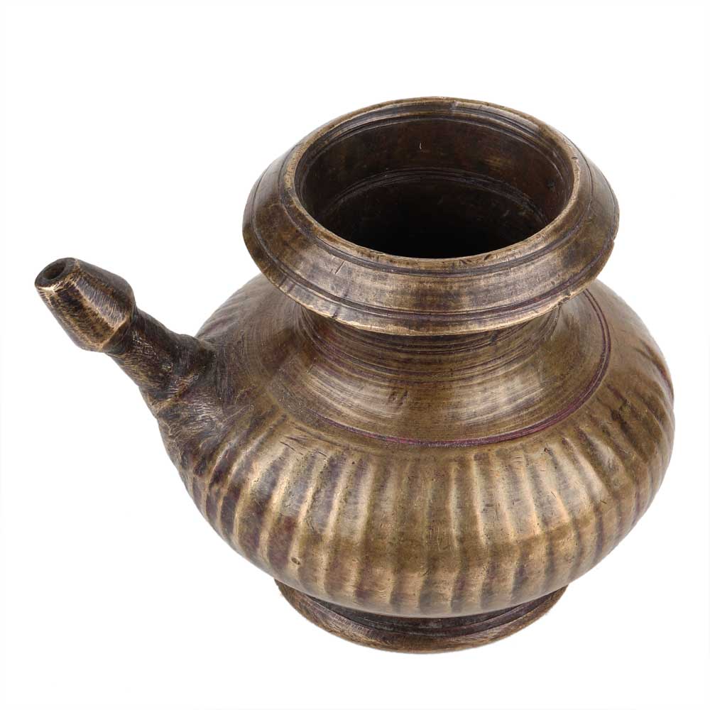 Handmade Brown Brass Water Pot with Spout for Daily Worship