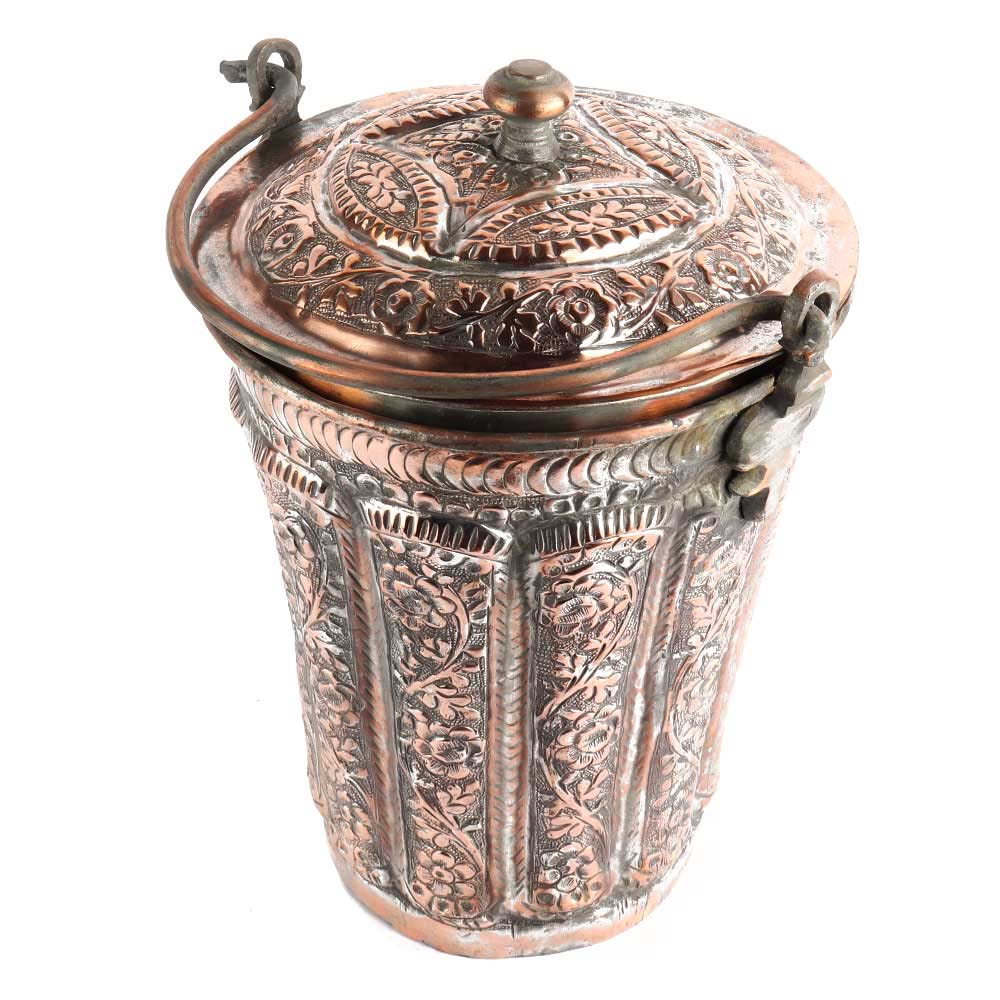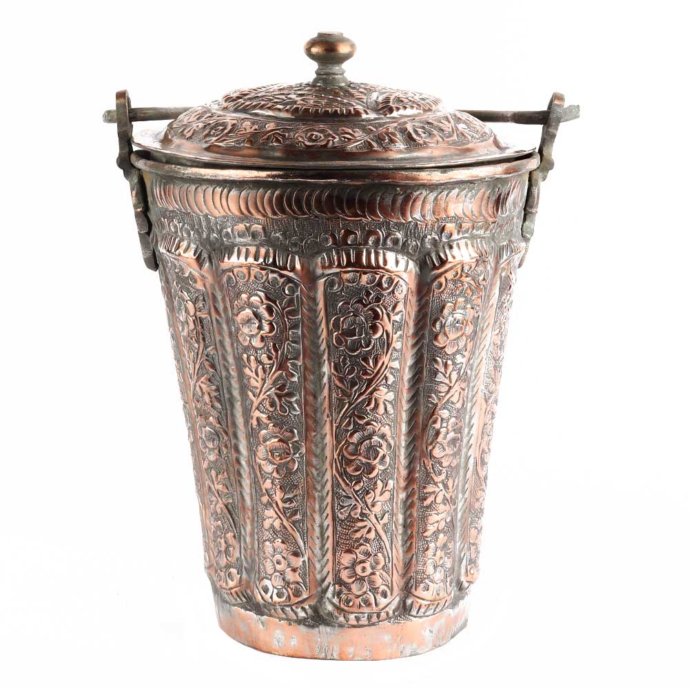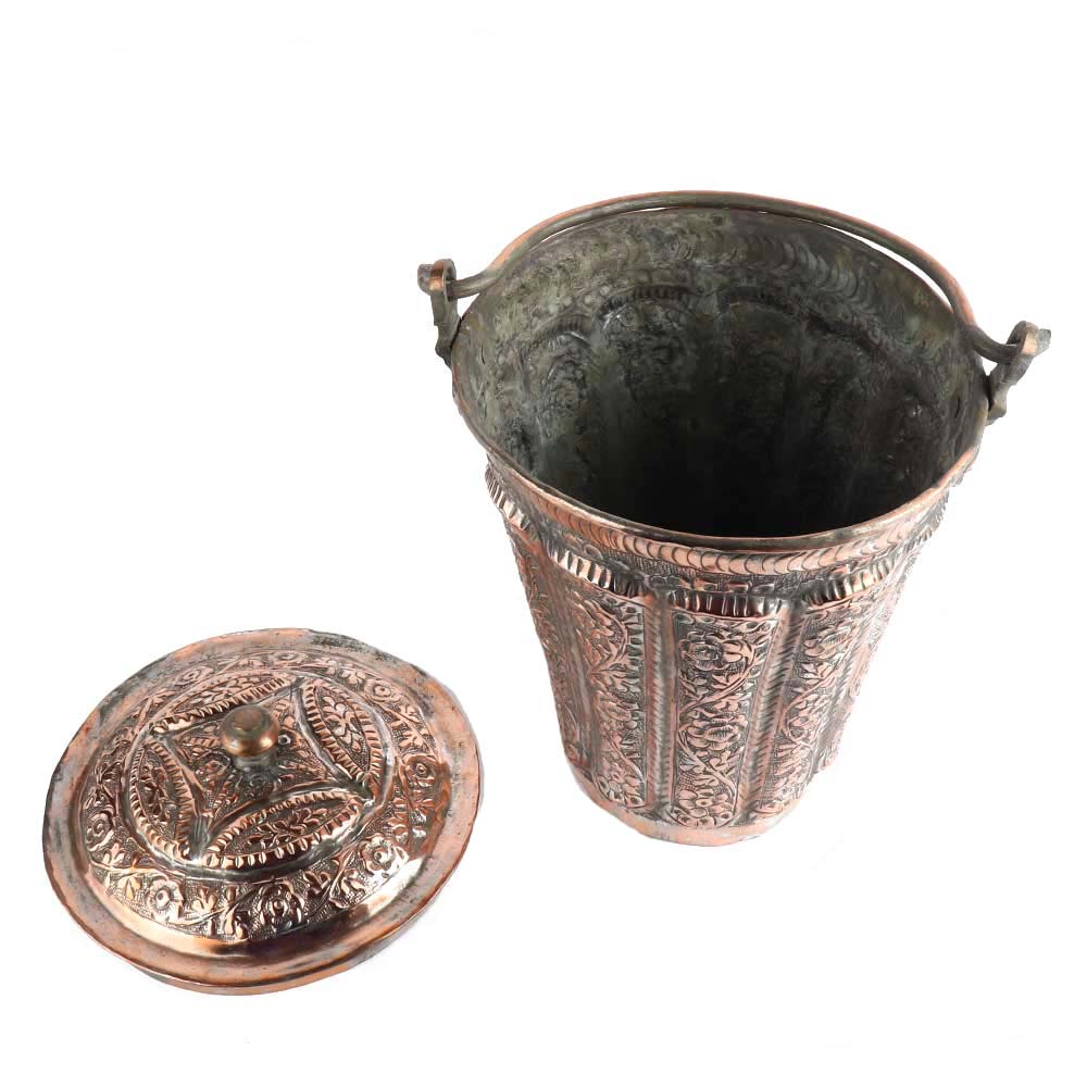 Handmade Brown Copper Floral Design Engraved Bucket And Lid