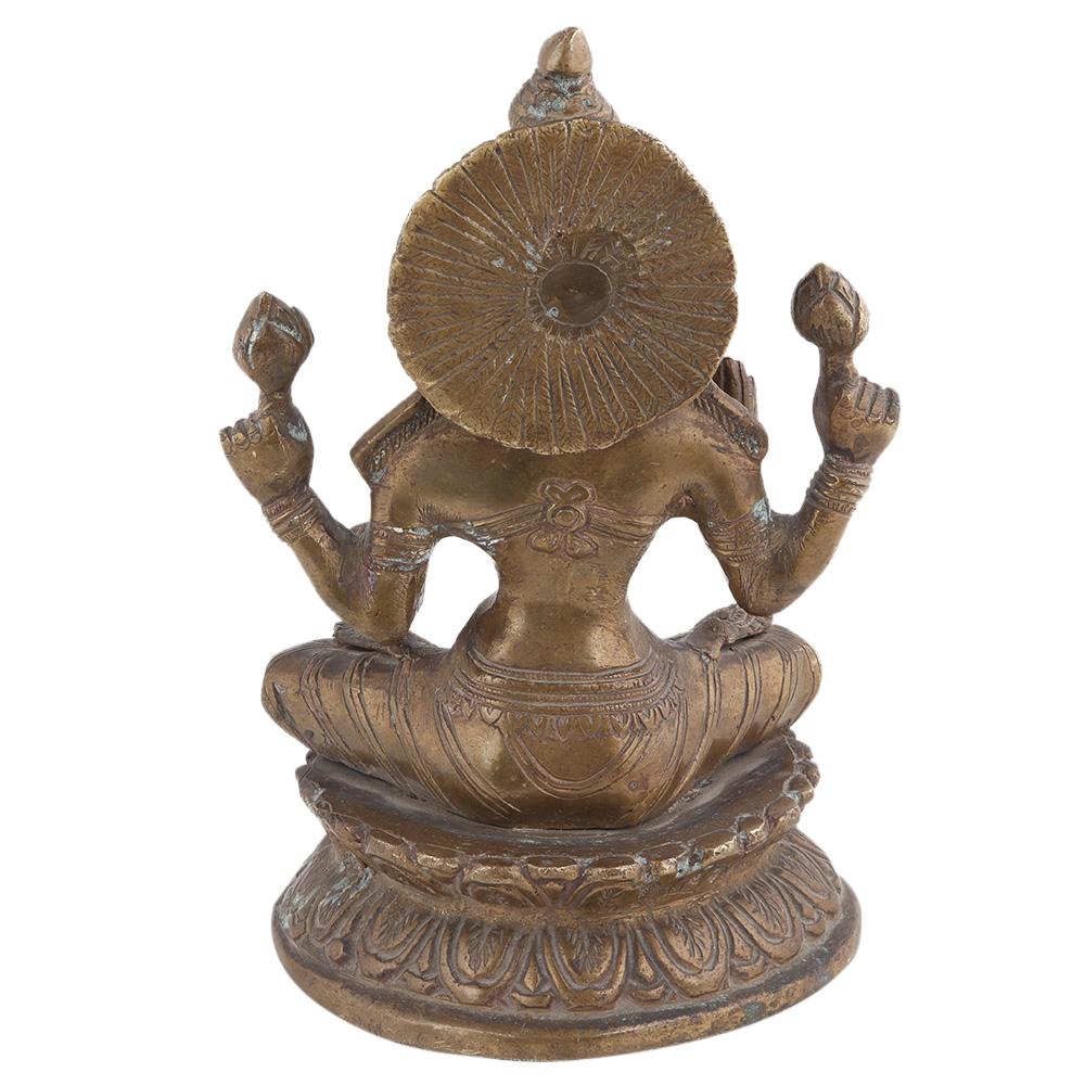 This artistic brass metal statue of the Hindu goddess Lakshmi is a symbol of good luck, prosperity. It is the perfect wedding gift, anniversary gift, birthday gift for your loved ones. It has a lovely patina finish.