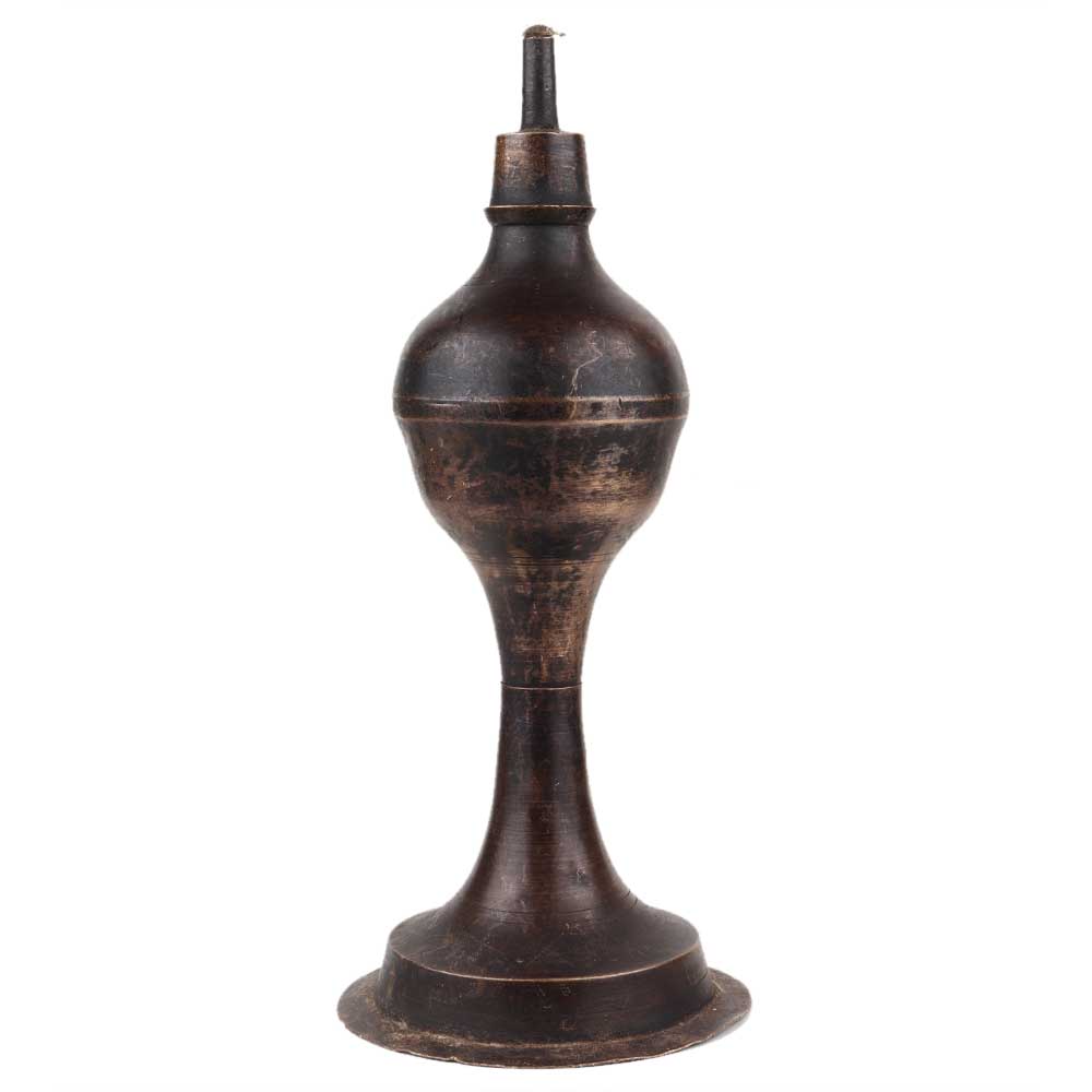 Handmade Brown Patina Brass Oil Lamp With A Single Wick