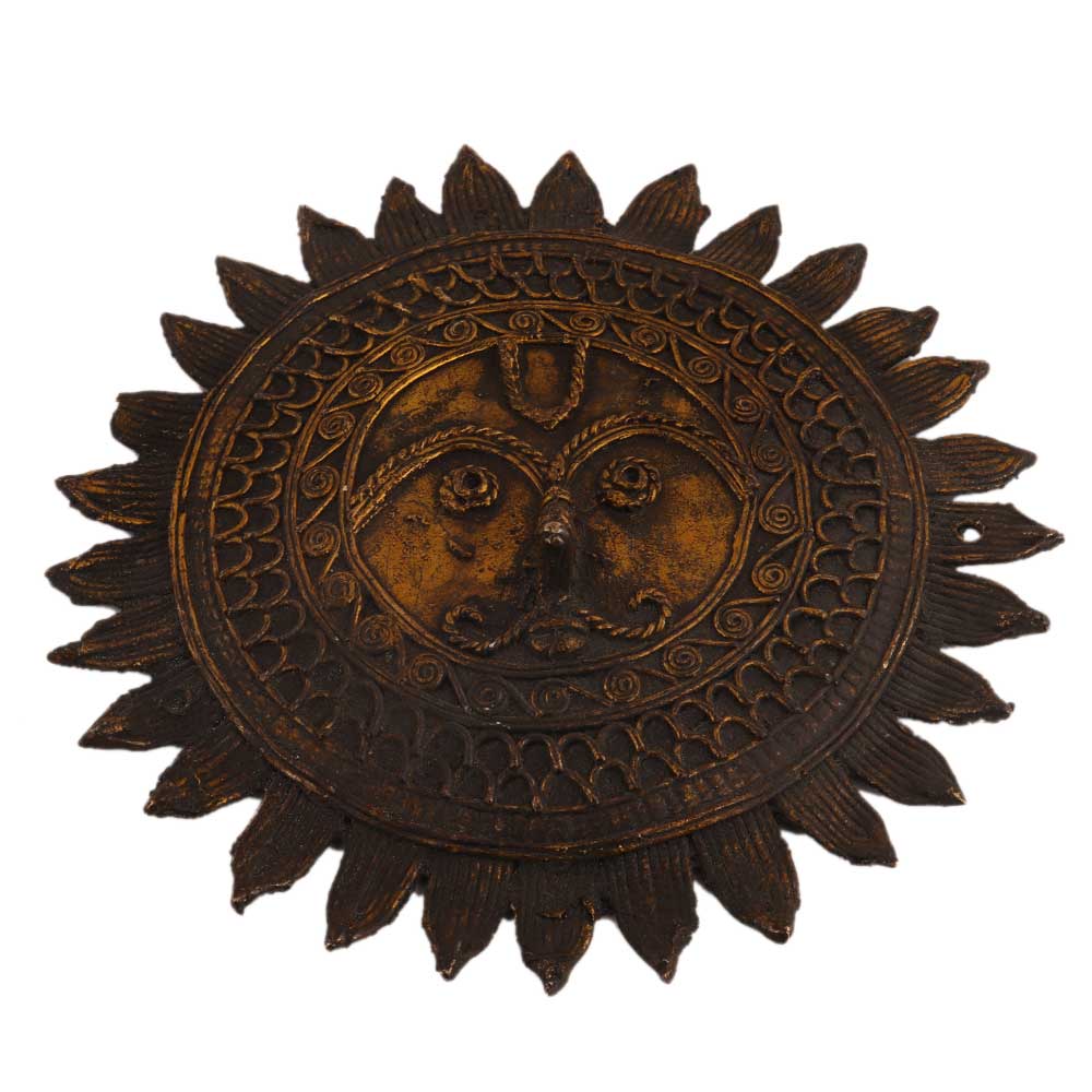 • Handmade Brown Patina Brass Sun Face Wall Hanging