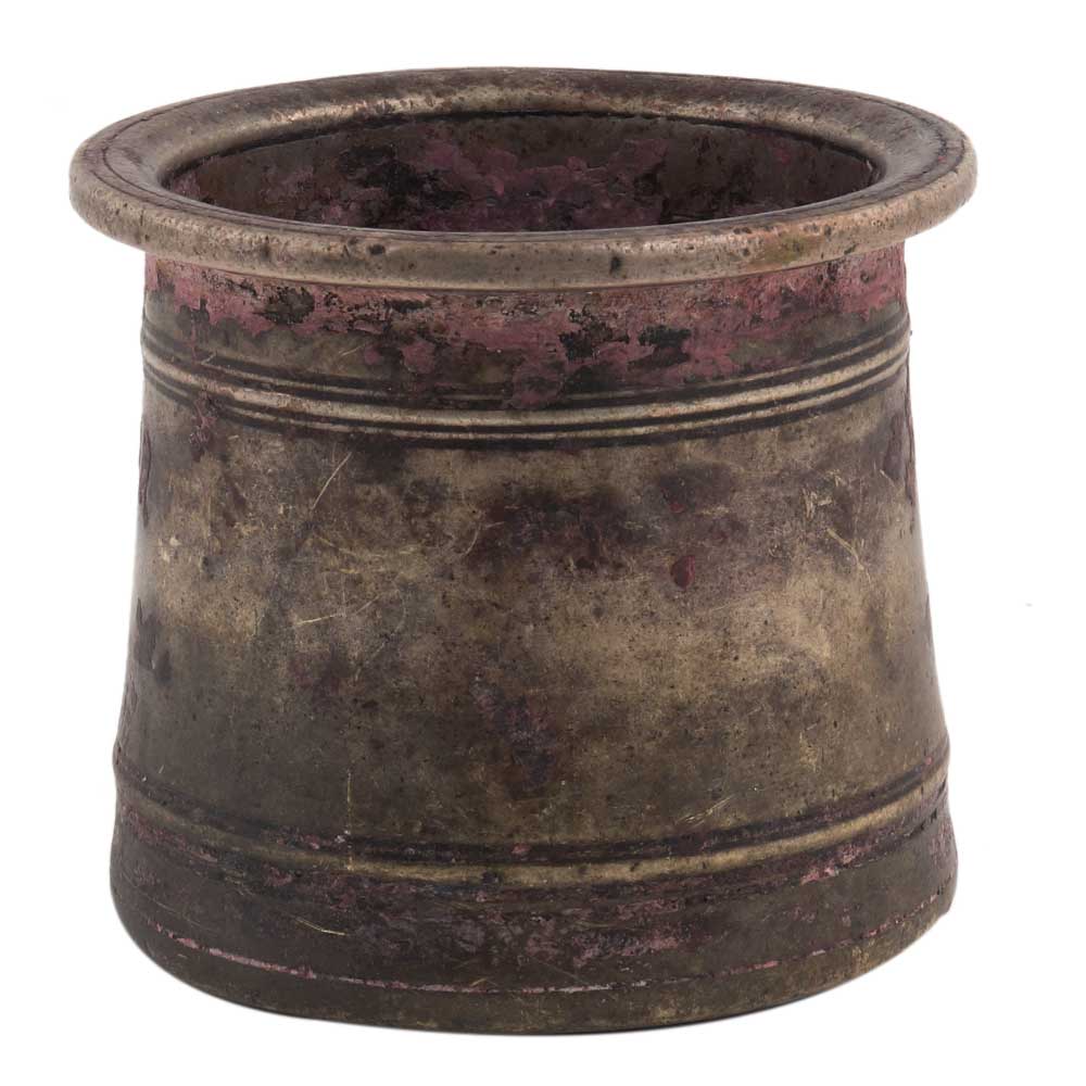 Hand-made brown brass Charnamrit cup is used to store pooja water and distributed to devotees in temple and family members.