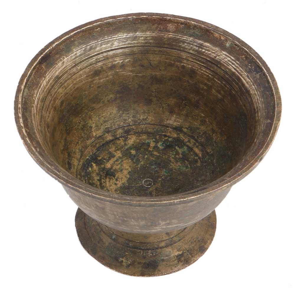 • Handmade Brown Patinated Brass Serving Bowl On Stand