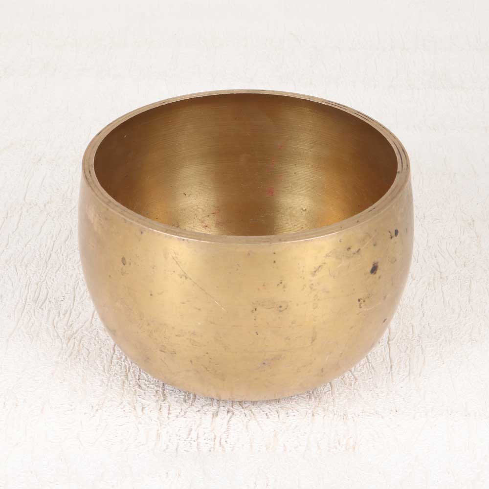 Unleash the healing power of sound with this authentic vintage brass Om singing bowl. Handcrafted over 50 years ago in the Himalayas, this singing bowl produces pure, resonant tones when played with the included mallet. The vibrations calm the mind, relieve stress, and promote deep relaxation. The pleasant ringing tones of this brass Om singing bowl will wash away your worries and tension. Close your eyes, take deep cleansing breaths, and feel the calming vibrations resonate through your body as you play this singing bowl. Regular use helps center your mind, reduce anxiety, and promote restful sleep. Give yourself the gift of inner peace with this authentic vintage brass singing bowl. Ideal for yoga practitioners, sound healers, meditation enthusiasts, or anyone seeking an oasis of calm in their busy day. This timeless singing bowl makes a meaningful gift and beautiful spiritual decoration.