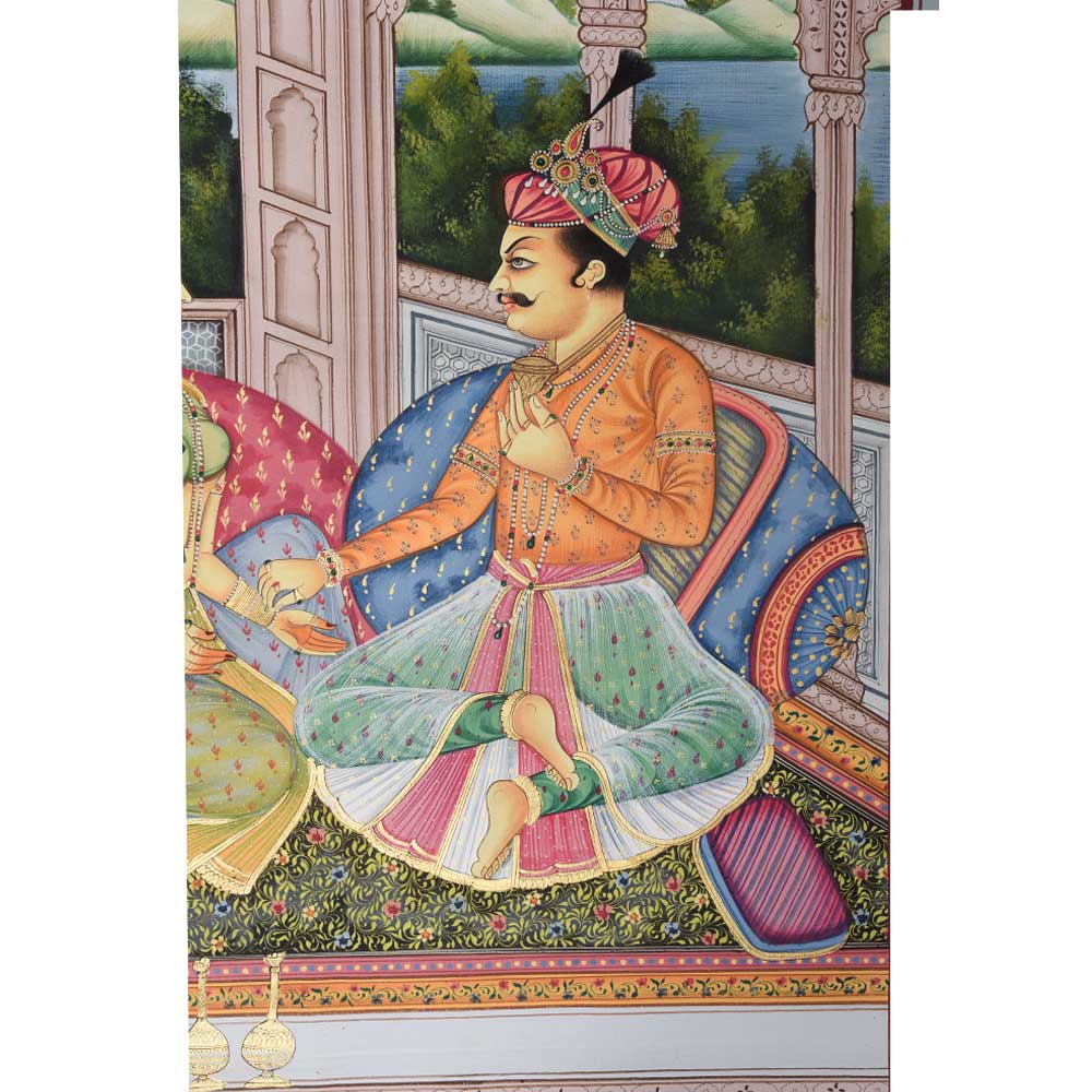 This is a colourful Canvas Mughal painting that holds an old age charm and depicts the glorious life of the emperor. This painting is hand-painted by expert painters and will surely add glamour and colour to the dull walls of your home, den, club, or office.
