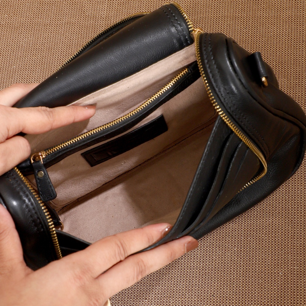 Crafted from amazing Charcoal leather it has a sleek, modern design, featuring a 2-way zipper closure for easy access to your belongings. The adjustable and detachable crossbody sling allows you to wear it comfortably, whether you prefer it over the shoulder or across the body. Under the flap, the front panel houses a set-in welt mobile pocket, perfect for storing your phone, along with 3 card slots for quick and easy access to your essentials.