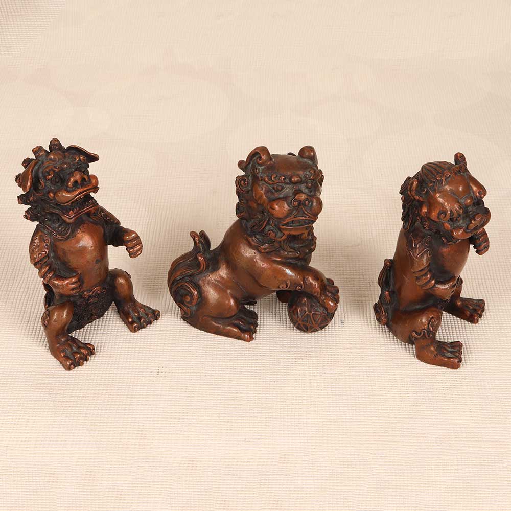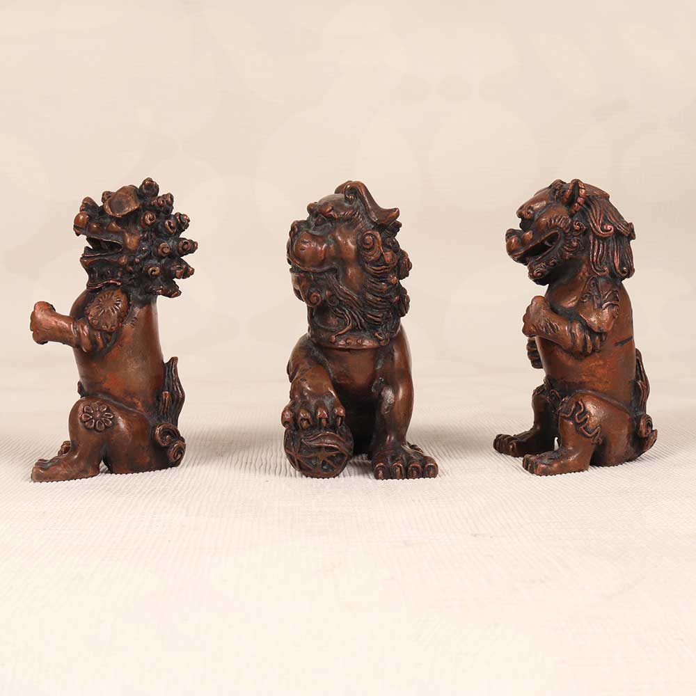 Own a Piece of Ancient Chinese History with this Majestic Set of 3 Metal Chinese Lion Statues. These intricately detailed antique-style statues bring the mystique of ancient China to your home or garden. With their powerful stances and finely crafted features, this lion trio evokes the guardianship, courage and wisdom these noble creatures represented in Chinese culture. Display them indoors to add an exotic accent to any room. Place them outside to give your garden an imperial flair. However, you choose to showcase them, these Chinese lion statues make a stunning decorative accent and conversation piece.
