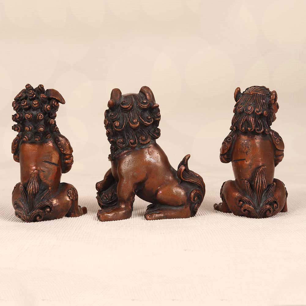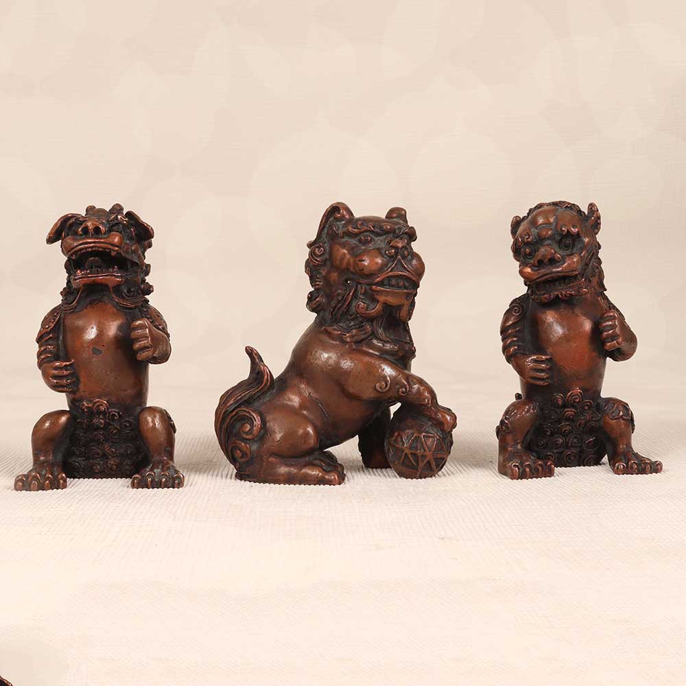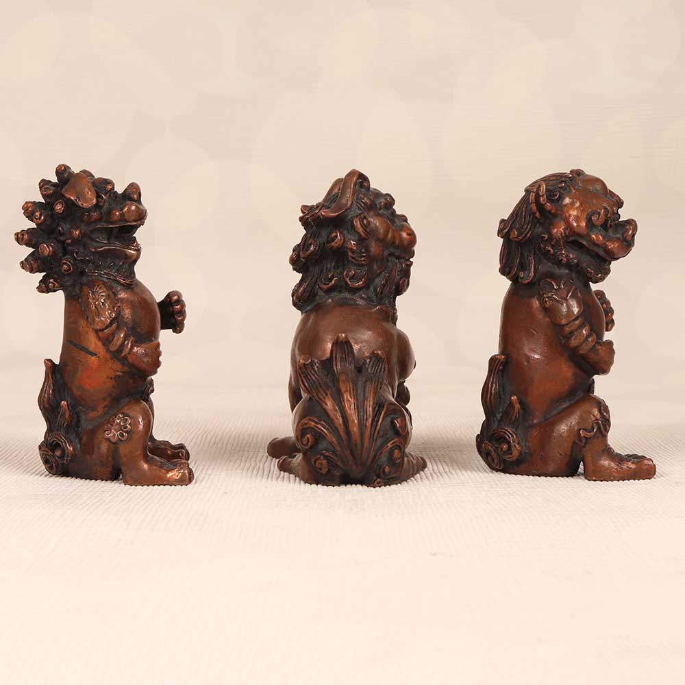 • Handmade Chinese Metal Lion Statue for Decor in Set of 3