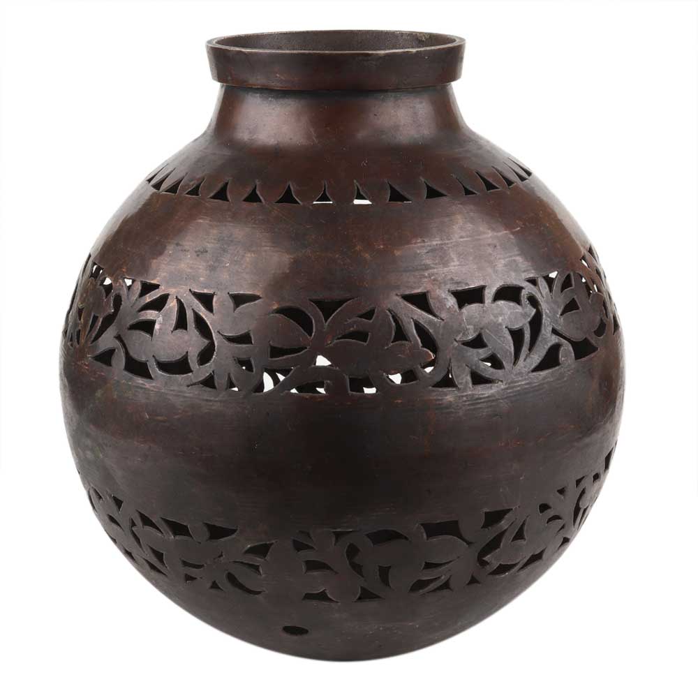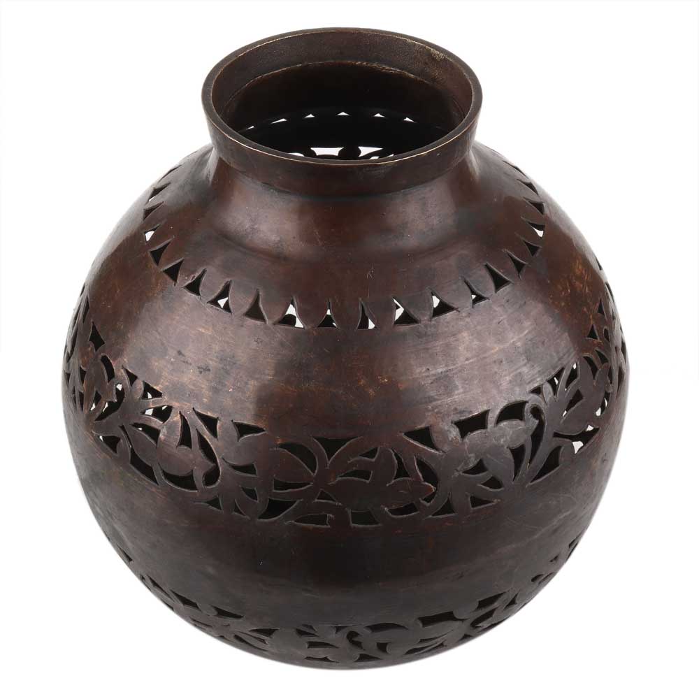 Handmade Copper Finish Brass Textured Carved Flower Vase