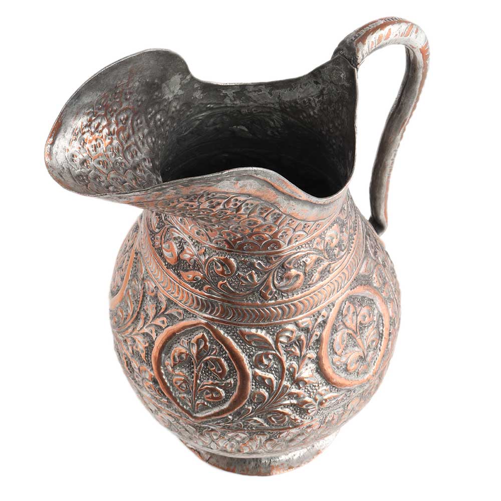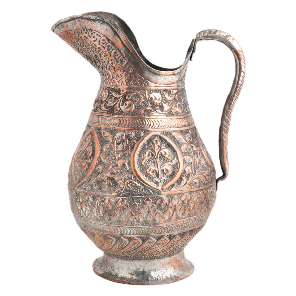Handmade Copper Jug With Flower Motifs Scroll Design