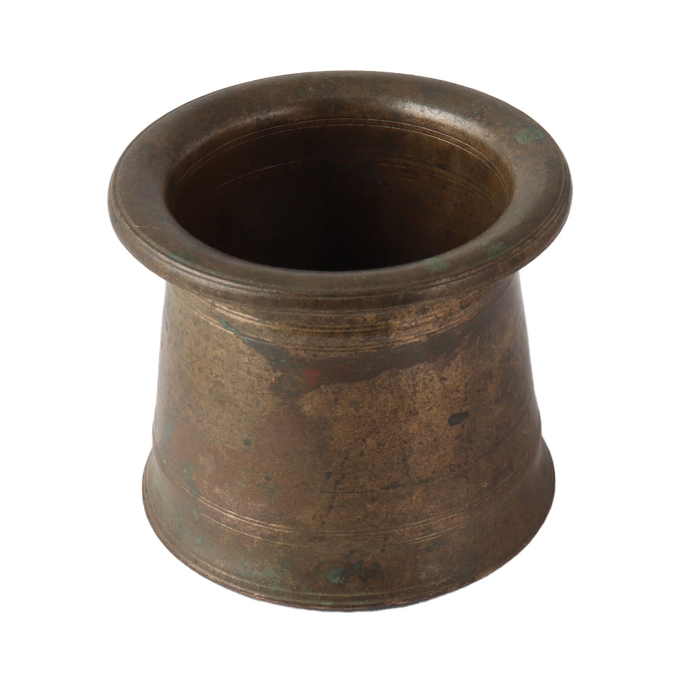 The copper panchpatra, also known as the charan Amrit cup, is an essential feature of poojas. Amrit is deposited in the sacred charan before the pooja and then distributed when the pooja is concluded. It comes in a dark finish.