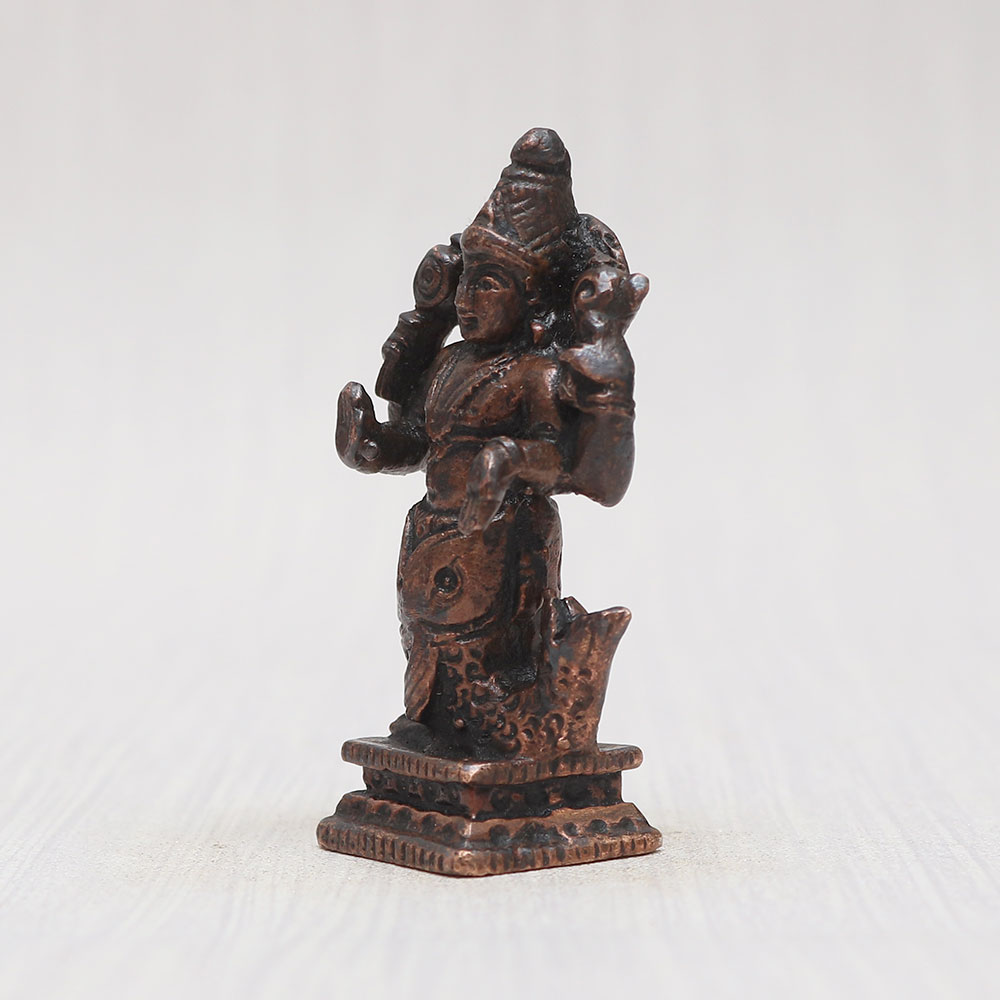 Bring the divine presence of Lord Vishnu's Matsya Avatar into your sacred space with this exquisite copper statue meticulously crafted by highly skilled and experienced Indian artisans. Made from high-quality copper with a vintage-style finish, this god showpiece is an ideal addition to your prayer room at home, office, restaurant, cafe, or shop. The statue boasts remarkable eye-catching detailing, making it a perfect item for exhibitions, decorations, and collections. Its sacred aura also makes it suitable for temple worship. This murti of Lord Vishnu is a thoughtful gift for your loved ones on special, festive, or auspicious occasions, spreading blessings and positivity in abundance.