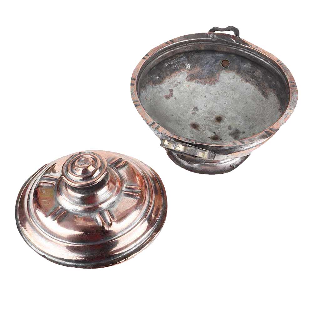 Handmade Copper Sugar Bowl With Lid And Circular Base And Stand