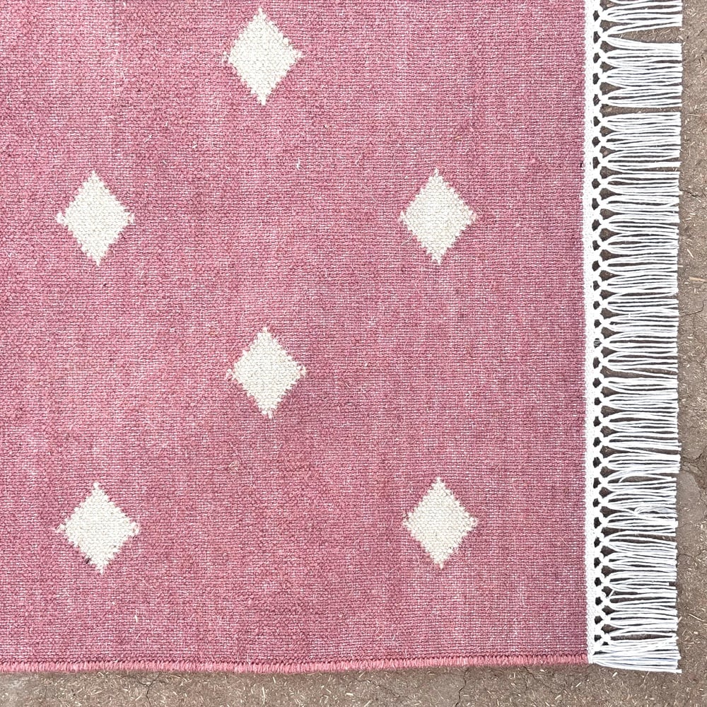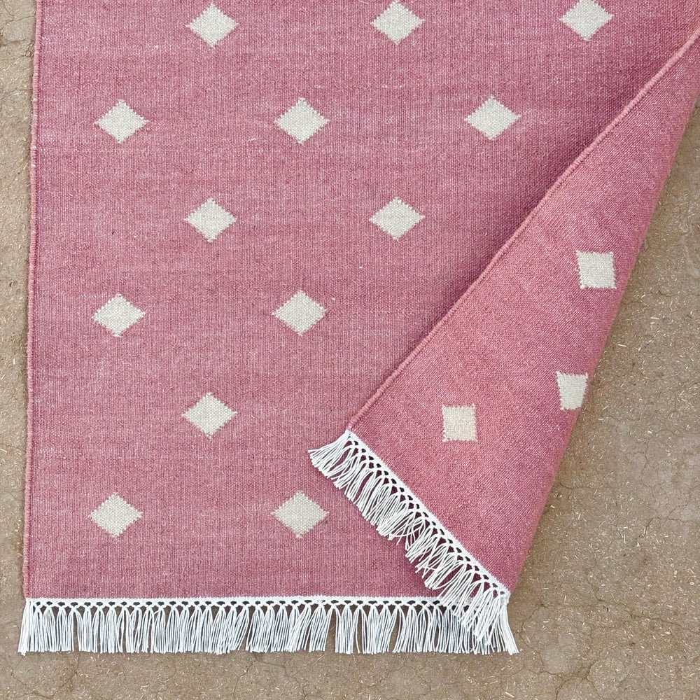 • Handmade Cotton Pink Minimalist Dhurrie For Living Room