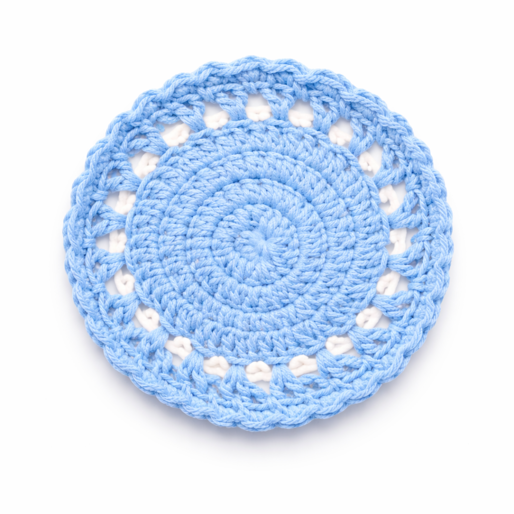 This handmade crochet doily coaster is crafted from premium cotton yarn and designed in a beautiful round lace pattern. The soft blue tone combined with delicate crochet stitches creates a decorative yet practical table accessory. Carefully handcrafted, this cotton yarn doily protects surfaces while adding a subtle handmade charm to everyday table settings.