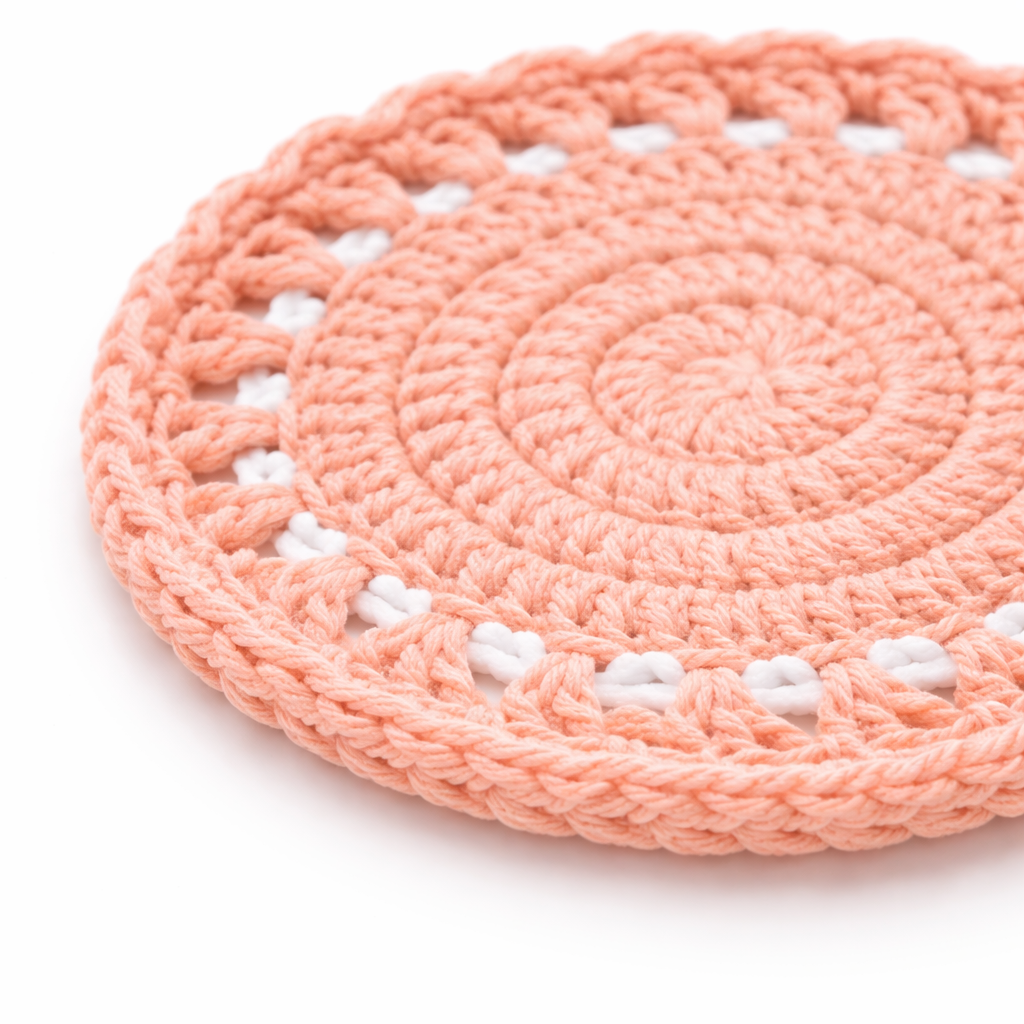 • Handmade Cotton Yarn Peach Crochet Doily Coaster