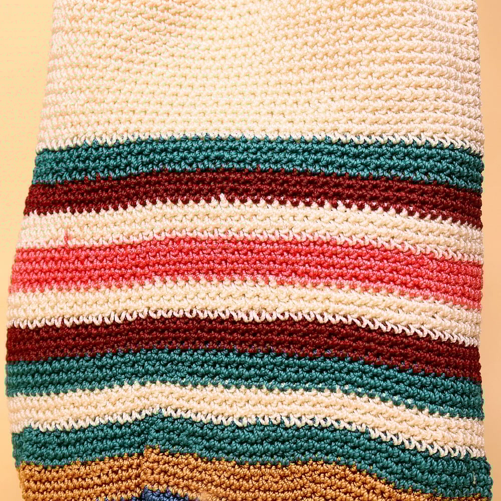 - Design Pattern: Handcrafted Crochet Design – Beautifully handmade with soft, durable yarn in a striped multicolor pattern.