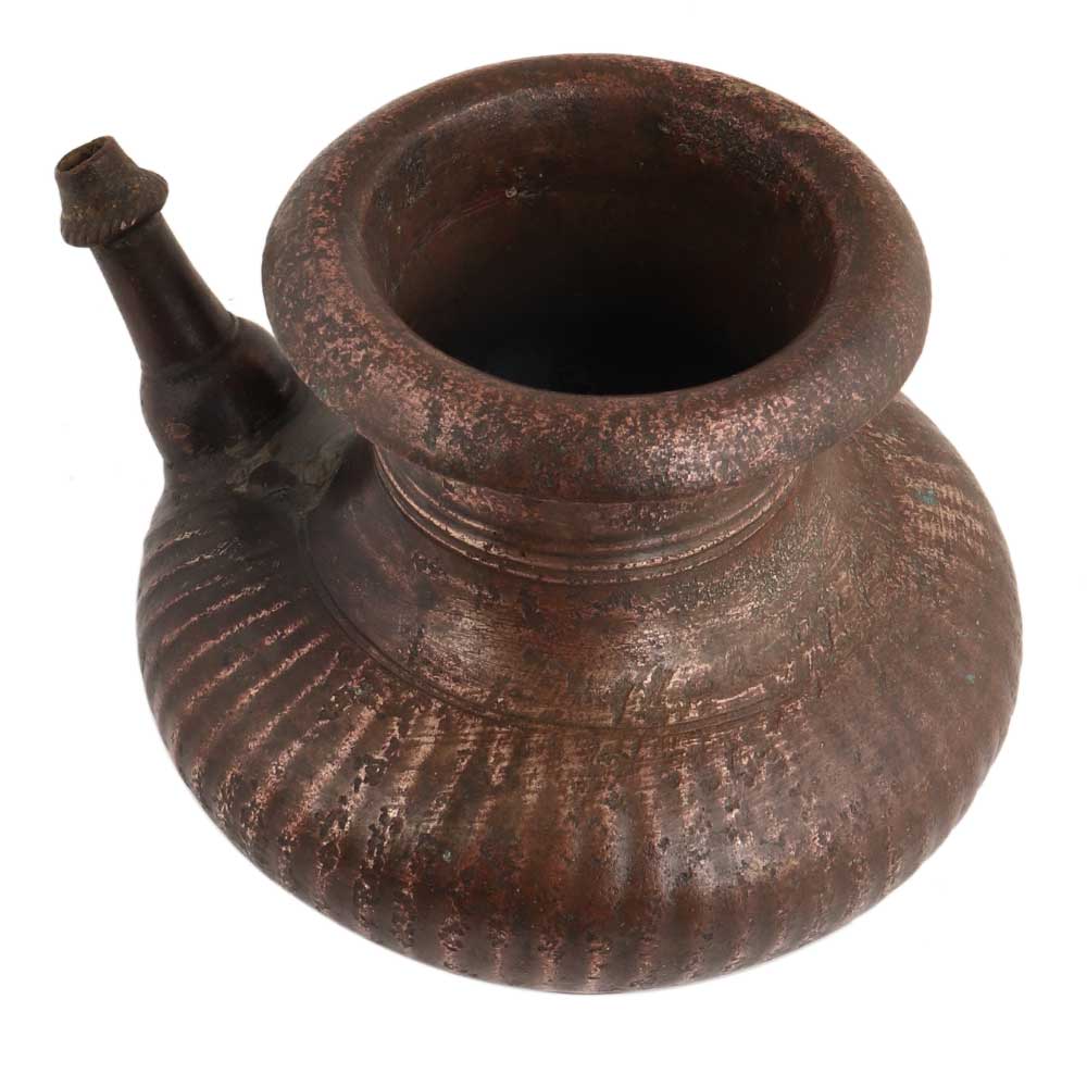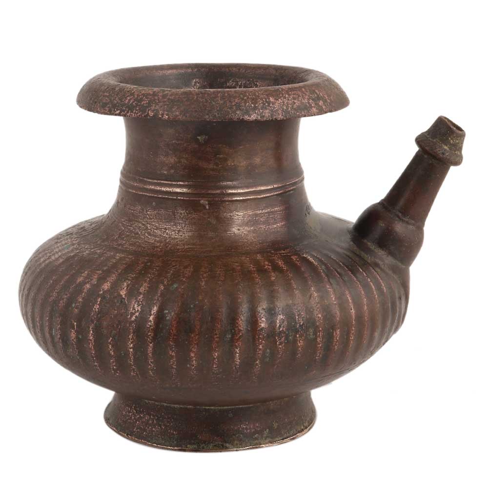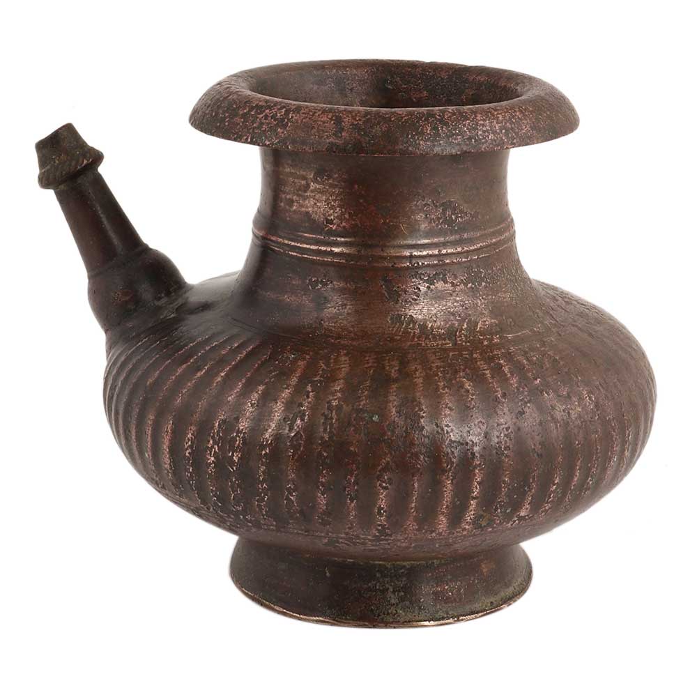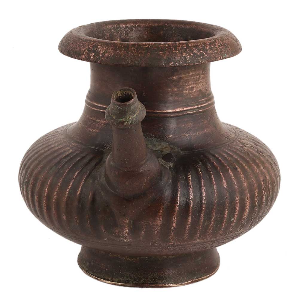 • Handmade Dark Brown Brass Pot With Fluted Design And Spout