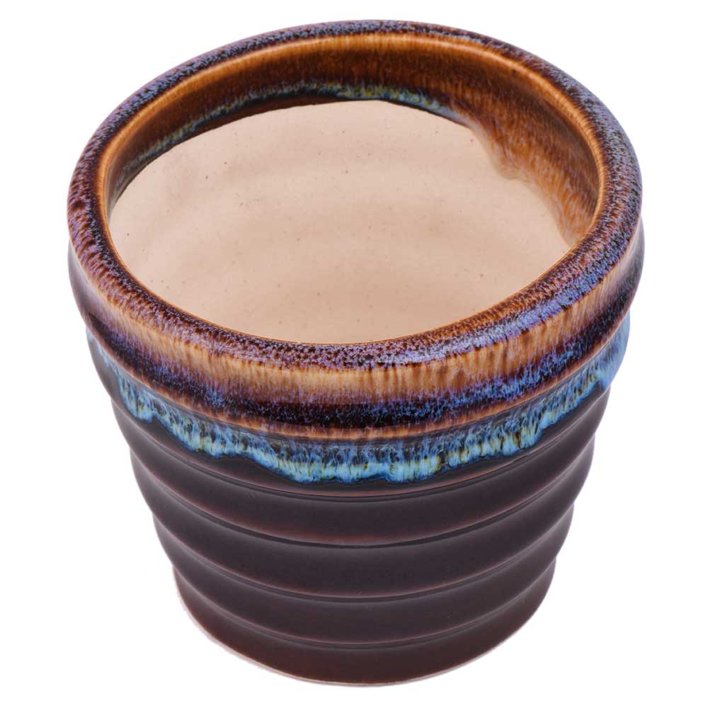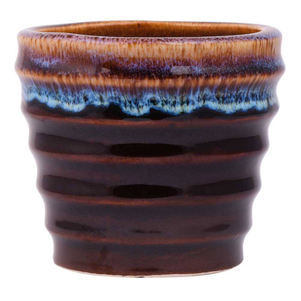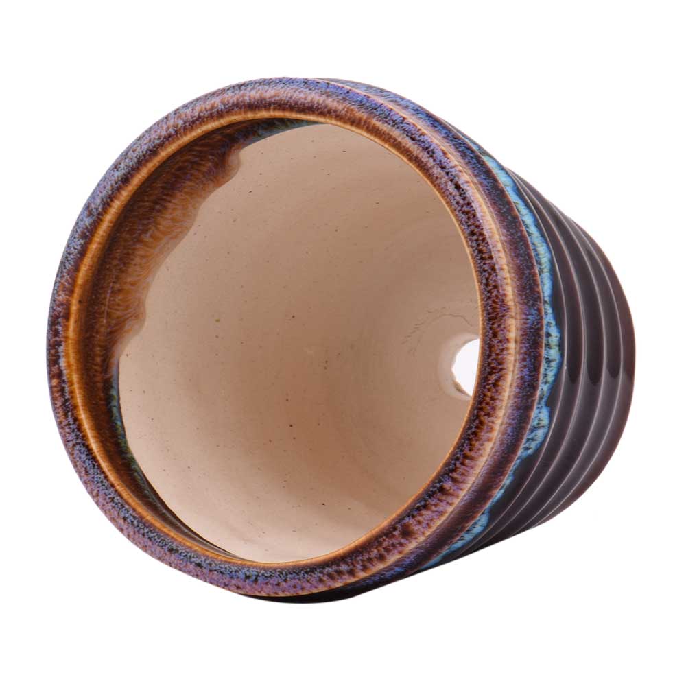 Handmade Dark Brown Striped Glazed Ceramic Pot to beautify your home, office and corporate offices, shops and other commercial places. Gift for your Friends , relatives and colleagues.
