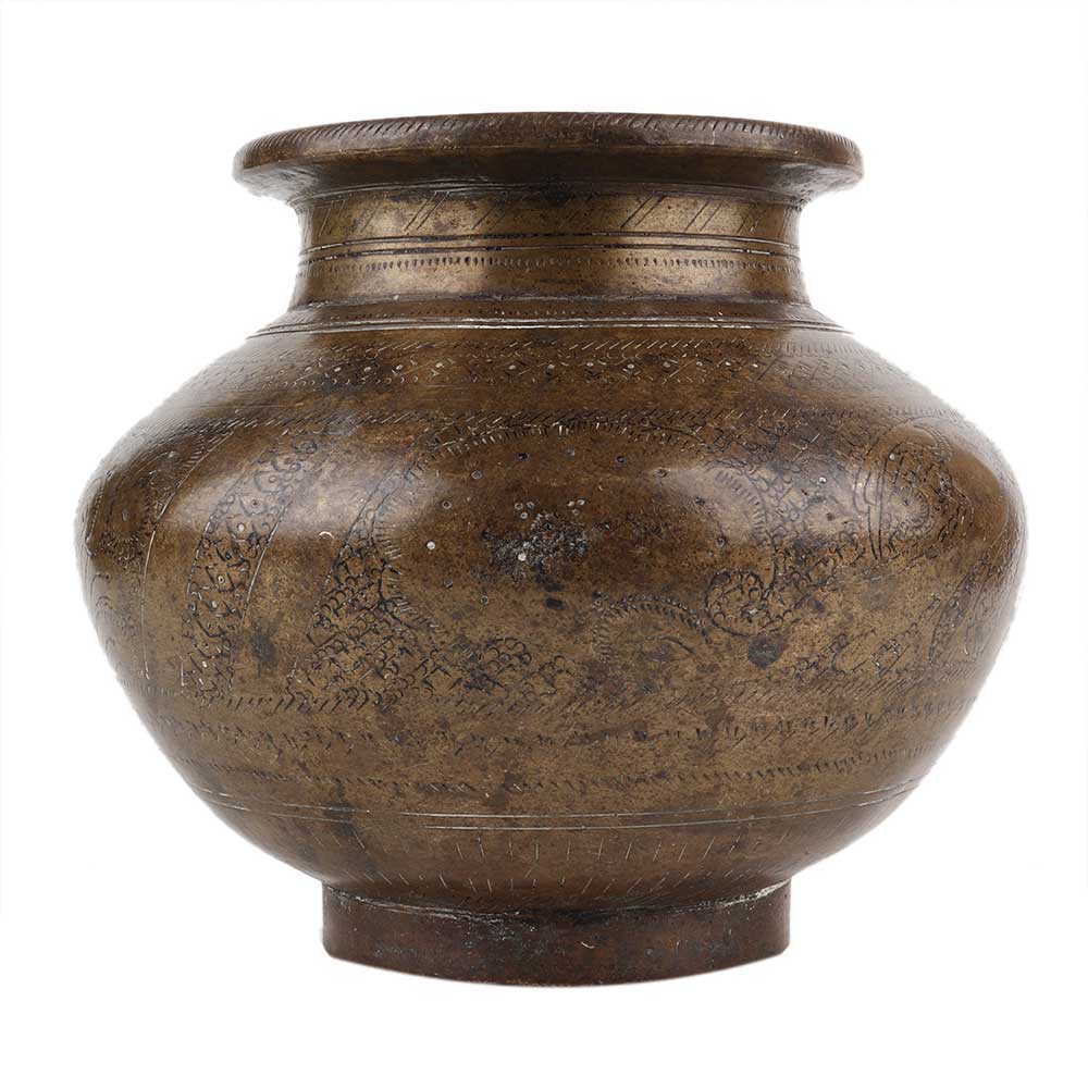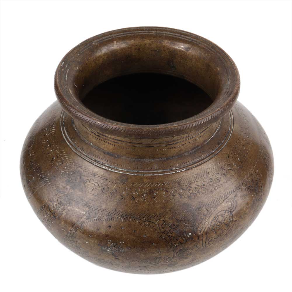 • Handmade Dark Finish Brass Holy Water Pot With Engraved Design