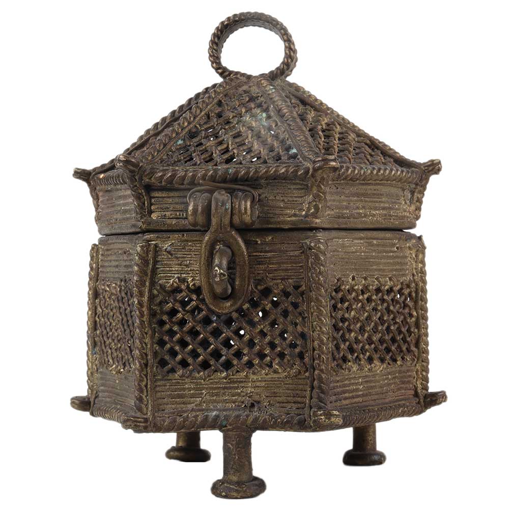 Handmade Dark Finish Brass Jewelry Box Hut Shape Tribal Design