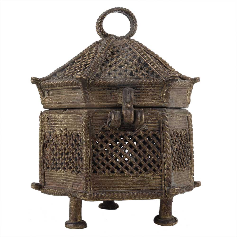This Handmade Tribal Hut design Brass Jewelry Box has enough storage space to store your Jewelry, Trinkets, and important documents with a Latch in the shape of a Hut.