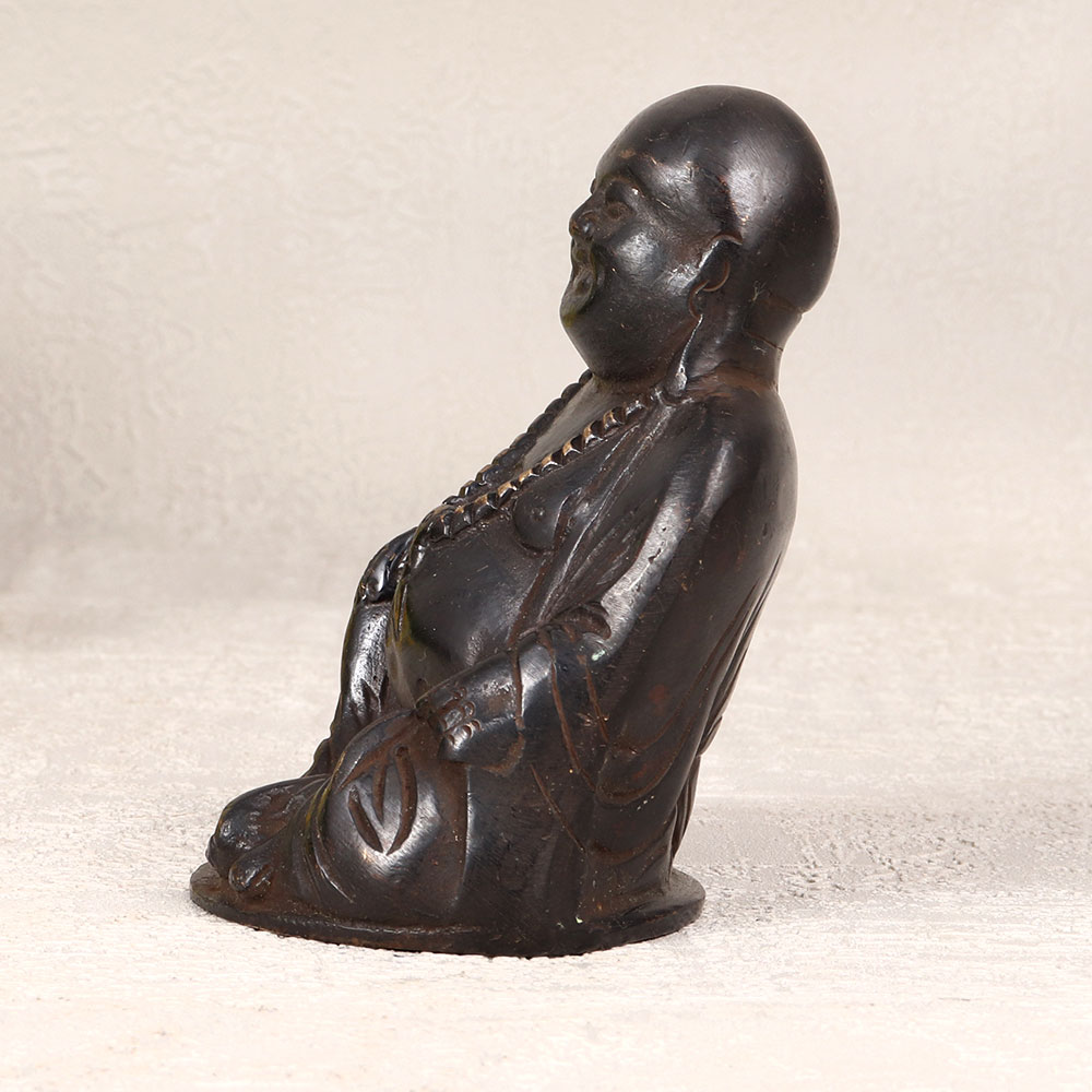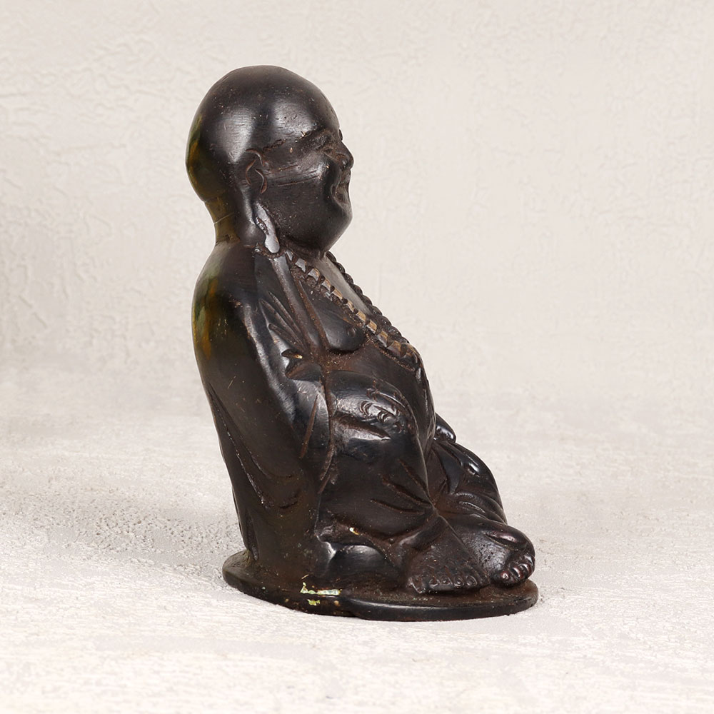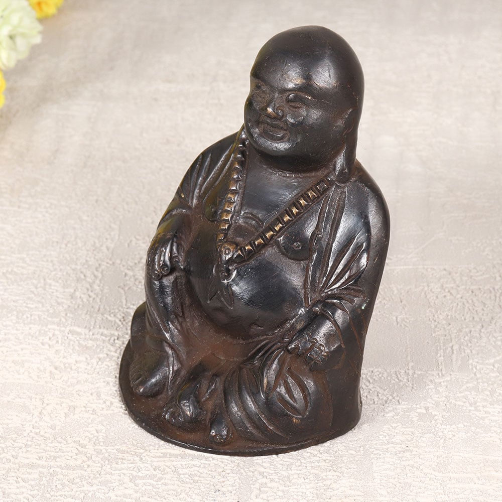 A magnificent brass statue of Laughing Buddha who is a symbol of joy and prosperity, meticulously crafted by professional Indian artisans with a profound commitment to their craft. This exquisite piece boasts a rich antique dark finish, adding a touch of timeless elegance to any space. Handmade from high-quality brass, this Laughing Buddha statue radiates authenticity and craftsmanship, showcasing the artistry passed down through generations. Its meticulously detailed design captures the essence of mirth and contentment, making it a perfect addition to your home, office, restaurant, hotel, or cafe, elevating the aesthetic of any environment. Ideal for collectors with a penchant for vintage treasures, this statue effortlessly blends tradition with sophistication. Its antique dark finish not only imparts a sense of history but also lends a unique character that makes it stand out in any decor. This Laughing Buddha statue is not just a beautiful ornament but also a thoughtful gift for your loved ones on special, festive, or auspicious occasions.