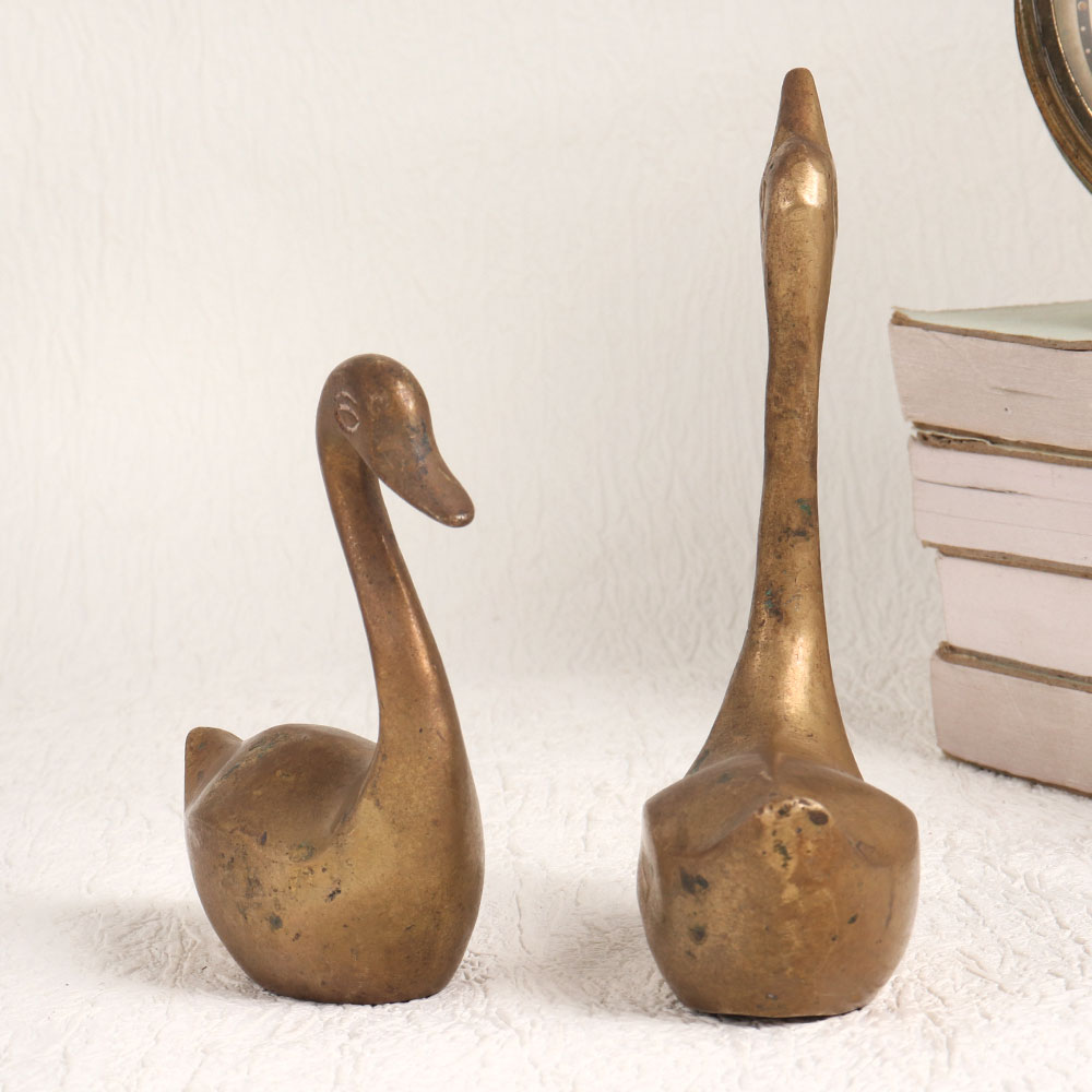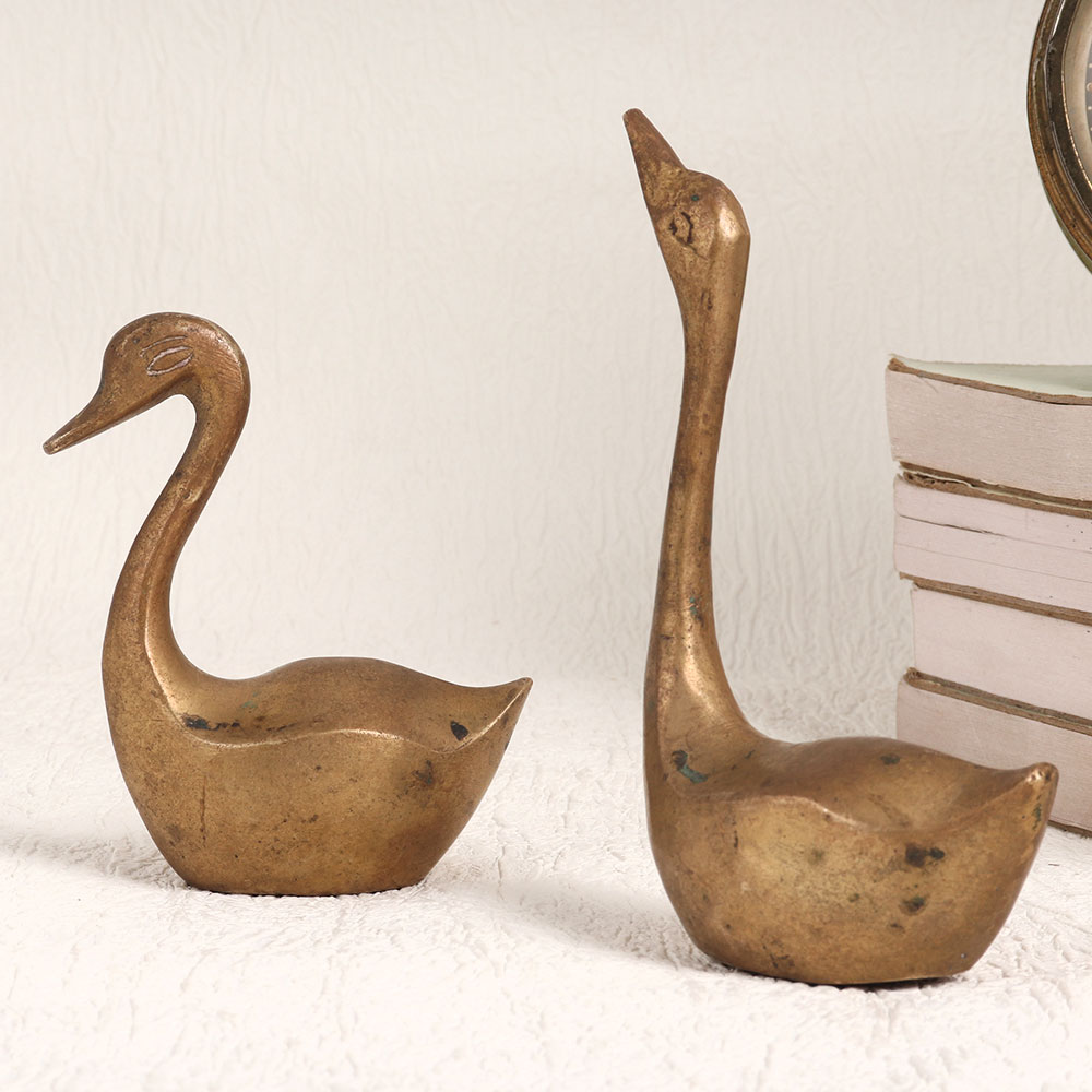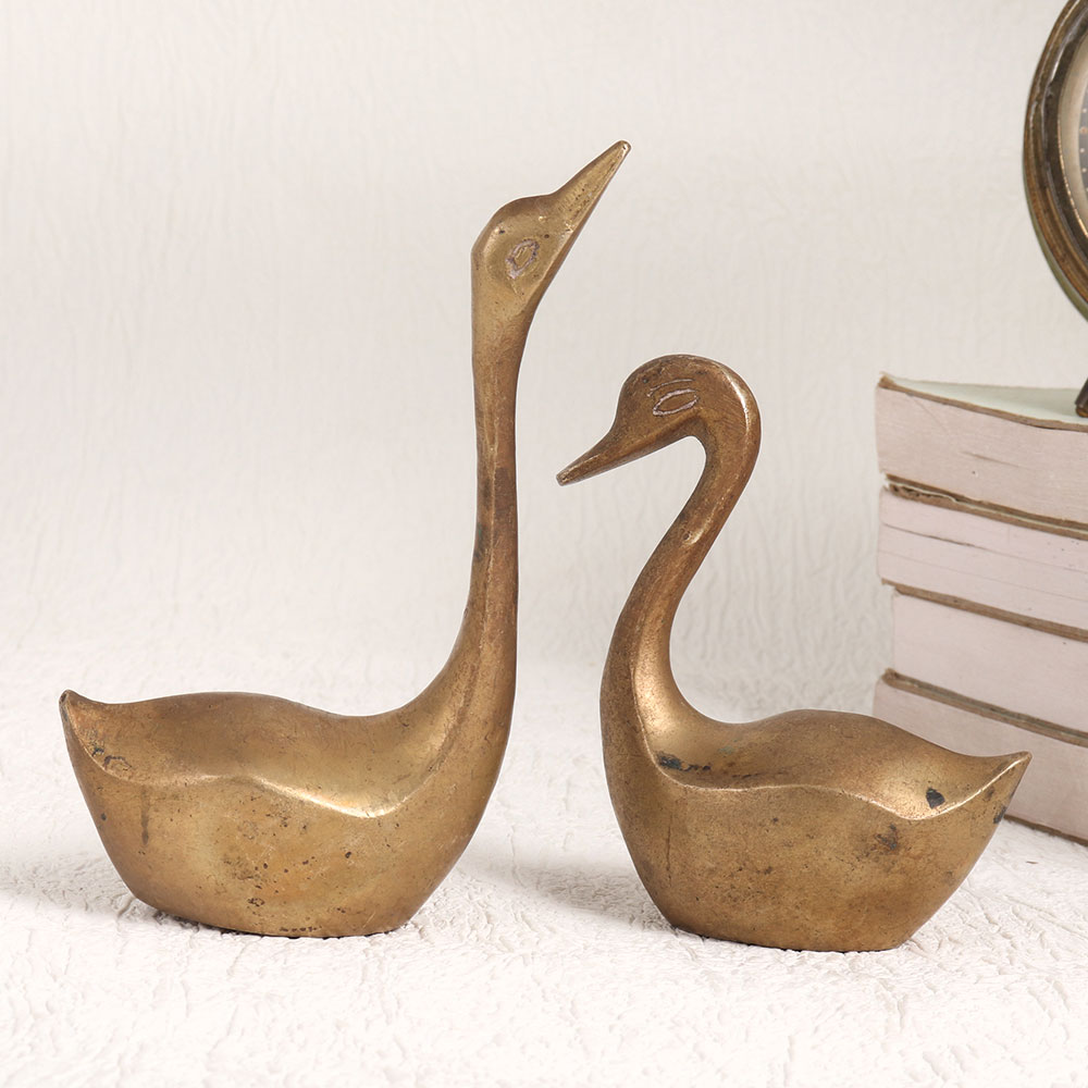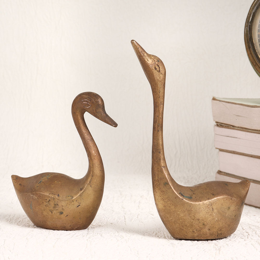 Buy an exquisite brass pair of ducks online in an antique brown finish and get a hassle free delivery right at your doorstep. Crafted with precision and passion by skilled artisans, these ducks embody the essence of high-quality craftsmanship. Each duck is meticulously handmade from premium brass, ensuring both durability and a lustrous vintage appearance. The antique brown finish adds an air of sophistication and elegance, making them a versatile addition to any setting. Whether gracing your home, office, restaurant, hotel, cafe, or shop, these ducks serve as an enchanting decoration piece that effortlessly elevates the ambiance. Ideal for vintage enthusiasts, they can take pride of place in your collection or enhance your exhibition's charm. Moreover, these ducks make for meaningful gifts on special, festive, or auspicious occasions, symbolizing the enduring bond of love and appreciation. Share the artistry of English craftsmanship with your loved ones, and let these brass ducks create lasting memories in their hearts.