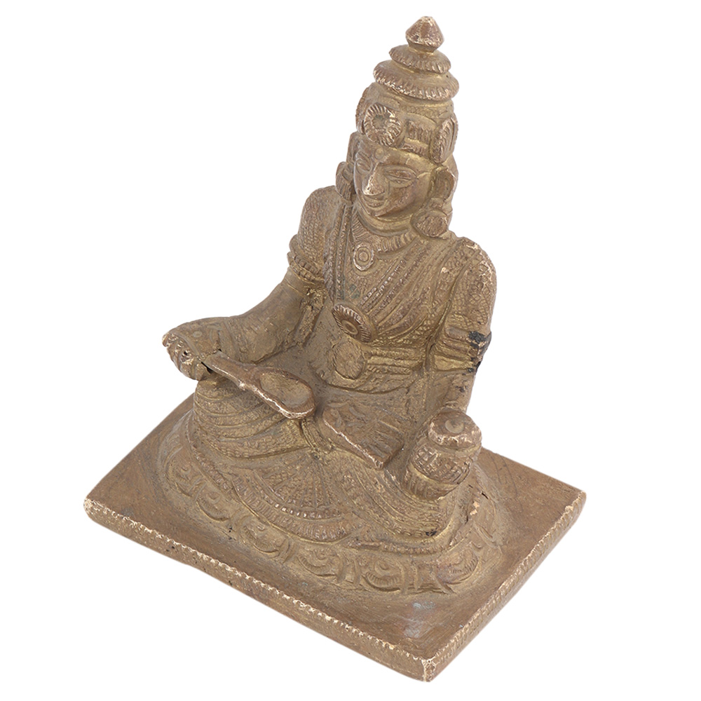 • Handmade Dull Golden Brass Annapurna Devi With Fine Carving Work