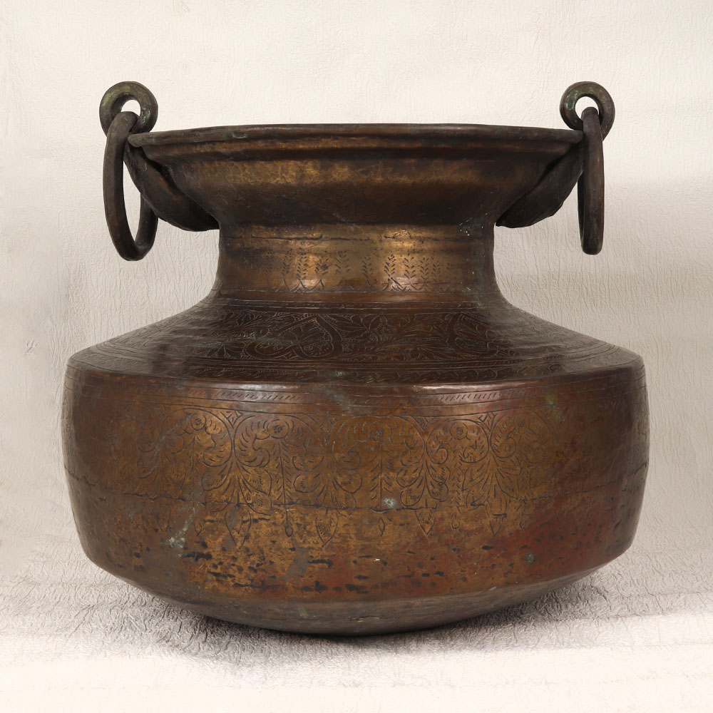 Indulge in the timeless charm of our Vintage Brass Water Pot which is a magnificent piece adorned with exquisite engravings, showcasing the rich heritage of highly skilled Indian artisans from Rajasthan. Meticulously handcrafted from premium brass, this unique pot boasts a distinctive antique brown finish that adds an air of sophistication to any setting. Featuring two gracefully curved handles, this water pot not only exudes vintage allure but also offers practicality and ease of use. Its versatile design makes it a perfect addition to various spaces, be it your home, office, restaurant, hotel, or cafe. Embrace its dual functionality by transforming it into an indoor flower pot, infusing your surroundings with a touch of nature and elegance. Beyond its aesthetic appeal, this brass masterpiece serves as an ideal collector's item, contributing to a curated vintage collection. Elevate your space with a piece that effortlessly marries history with artistry. As a thoughtful gesture, consider gifting this exquisite water pot to your loved ones on special, festive, or auspicious occasions, allowing them to cherish the craftsmanship and cultural significance embedded in every detail.