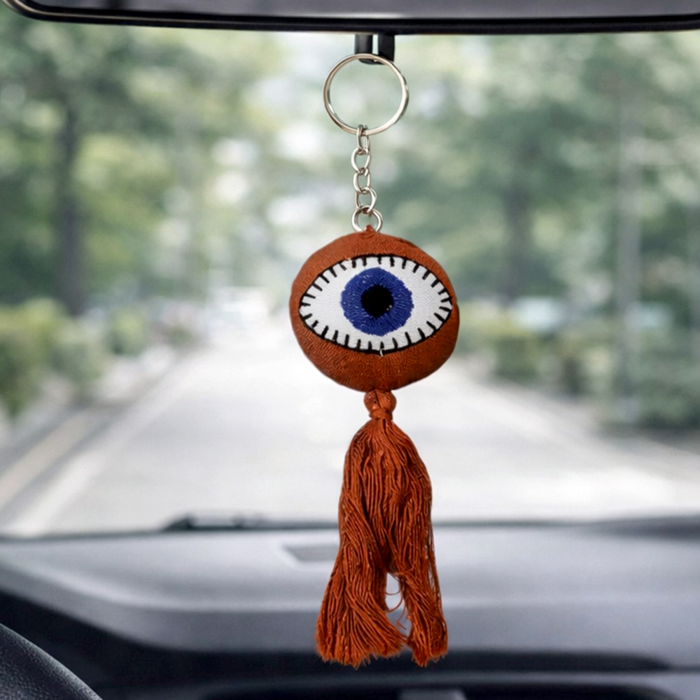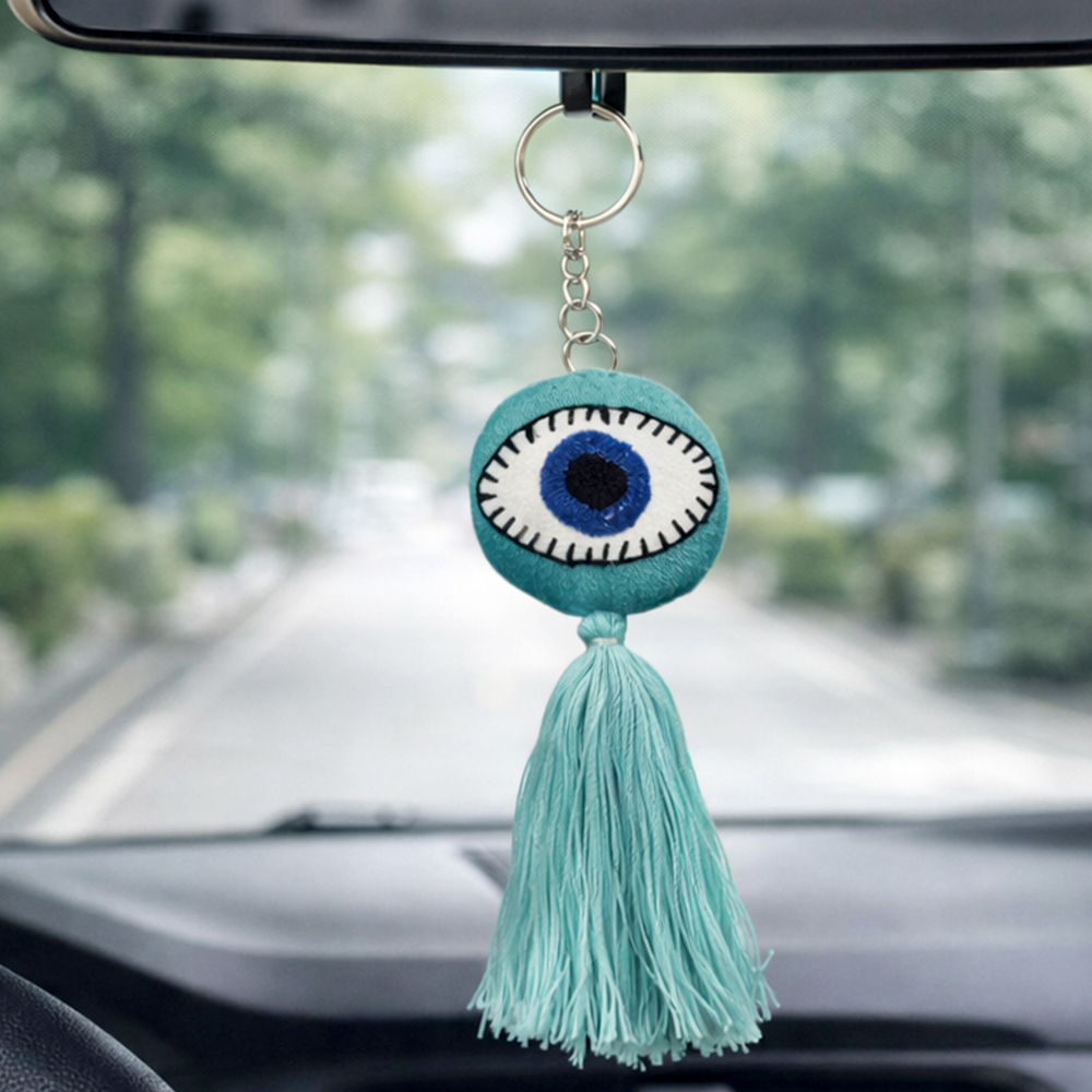 Rooted in cultural belief the evil eye motif is shaped into a soft tactile form that feels both expressive and functional. The long tassel adds movement while the rounded charm creates a balanced visual presence suited for modern lifestyles.