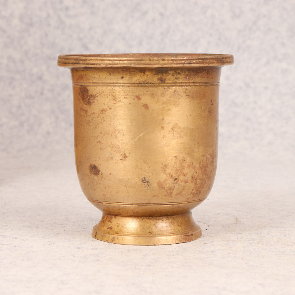 Enhance your spiritual ambiance with our exquisite Vintage Brass Panchpatra Pot that is a masterpiece meticulously handcrafted by highly talented Indian artisans. This sacred vessel, designed for holding holy water during prayers, exudes timeless charm with its antique brown finish, showcasing the rich cultural heritage of India. Forged from high-quality brass, the pot is a testament to artisanal mastery, blending tradition with elegance. Its vintage appeal and authentic craftsmanship make it a unique addition to any prayer room, be it at home, in an office, restaurant, hotel, or cafe. This versatile piece seamlessly complements diverse settings, enhancing the sacred atmosphere wherever it finds a place. As a collector's item, the Vintage Brass Panchpatra Pot promises to be a cherished addition to your vintage collection, carrying with it the stories of devotion and craftsmanship from generations past. Moreover, it serves as a thoughtful and meaningful gift for your loved ones on special, festive, or auspicious occasions, symbolizing blessings, tradition, and the enduring beauty of cultural heritage.