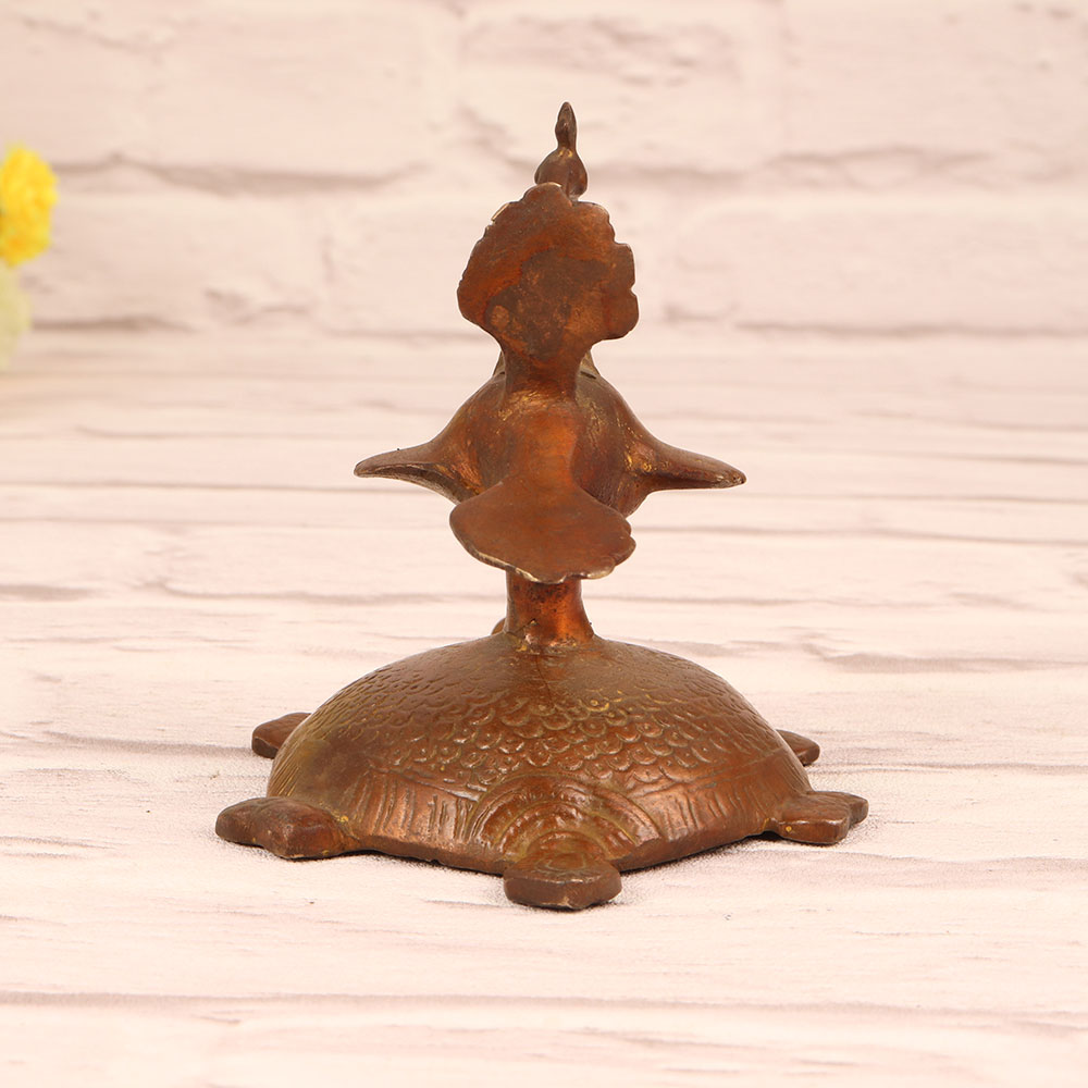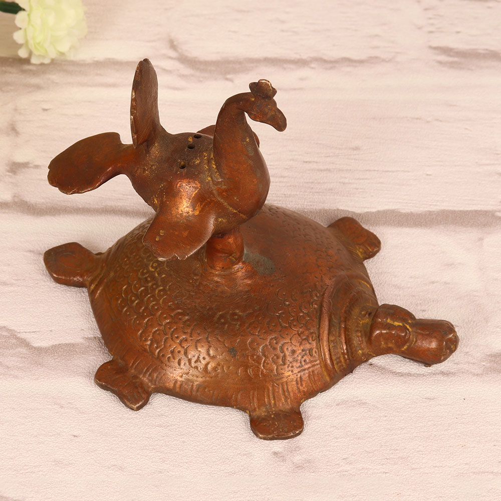 Adorn your home with the exquisite charm of our Brass Peacock Incense Holder on Turtle in Brass Finish. Meticulously handcrafted by talented Indian artisans, this captivating piece seamlessly blends tradition and sophistication. Crafted from high-quality brass, its intricate details showcase the artisan’s mastery, while the antique brown finish adds a touch of timeless elegance. The majestic peacock perched on a turtle creates a unique and harmonious design, making it a perfect addition to any home, office, restaurant, hotel, or cafe. Beyond its decorative allure, this incense holder serves a practical purpose, infusing your surroundings with the soothing fragrance of your favourite incense. Celebrate special moments by gifting this symbol of artistry and cultural richness to your loved ones on occasions that are festive, auspicious, or simply special.