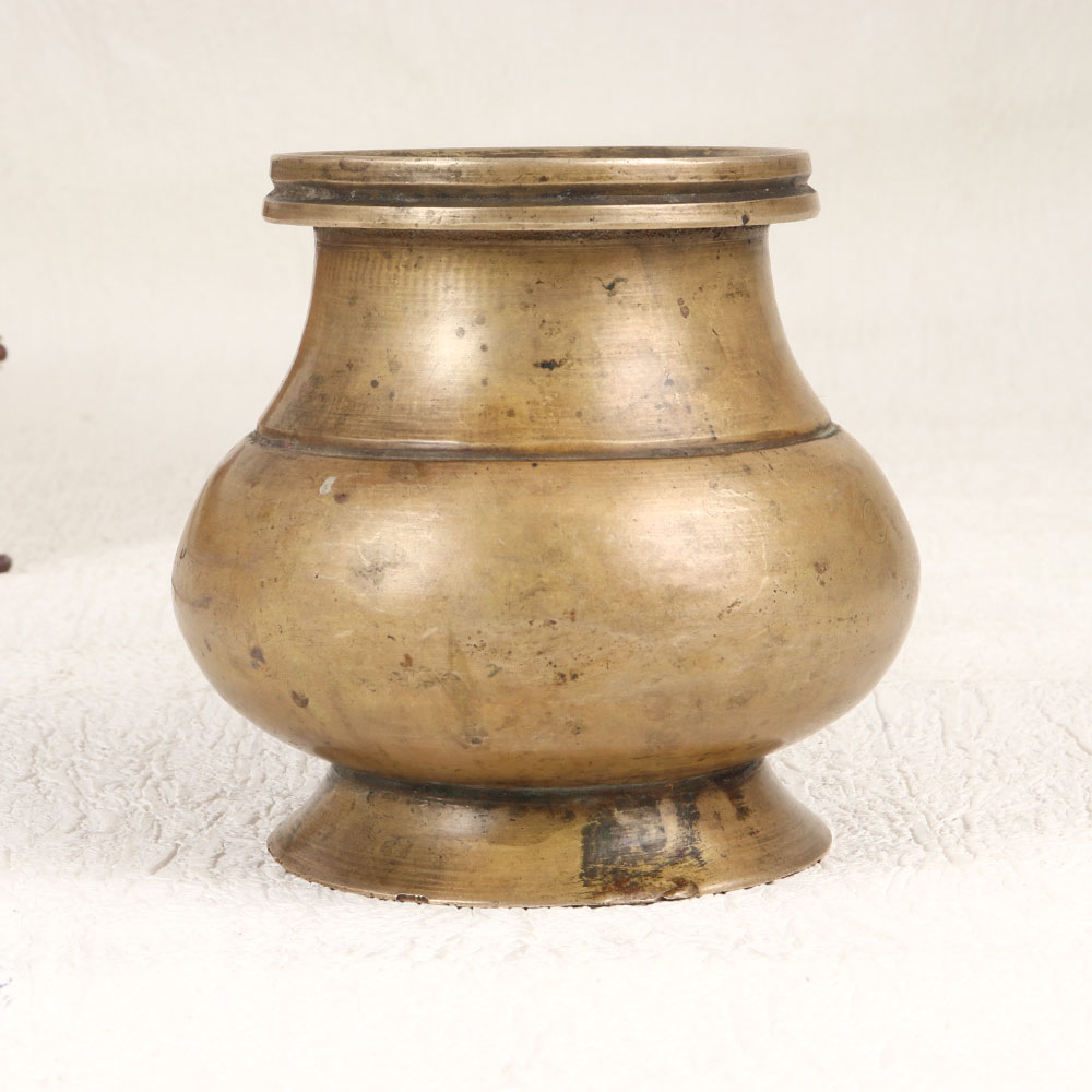 Behold the divine grace of this vintage brass holy water pot. Cherished for centuries, this sacred vessel elevates your home with timeless holiness. Immerse yourself in spiritual tranquility with this vintage brass holy water pot. Designed to cradle pure holy water, it provides a sanctified space for prayer and contemplation. Lovingly finished from use over time, the alluring vintage finish adds warmth and meaning to your home. Bring tradition and meaning to your religious rituals with this vintage brass pot. Whether you're blessing your home, welcoming guests, or sanctifying weddings, it's a cherished way to share in the divine.
