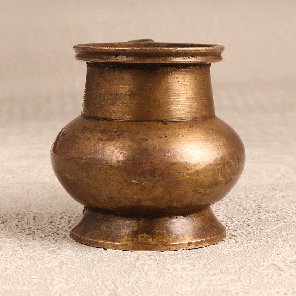 Embrace the divine essence with this exquisite Vintage Brass Holy Water Pot which is affectionately known as the Sagar Pot, boasting an antique brown finish that whispers tales of time. Meticulously handcrafted by highly skilled Indian artisans, this masterpiece is a testament to the rich heritage of South Indian Art. Fashioned from high-quality brass, it serves as a sacred vessel during prayers, havans, or rituals, cradling holy water with grace. Versatile in its charm, this pot doubles as a floral haven, gracing your home, office, cafe, restaurant, or hotel with timeless elegance. A relic of the past, it beckons to be part of your vintage collection, a treasure to be showcased at exhibitions. The pot's allure extends beyond personal joy, it makes for a thoughtful and meaningful gift on special, festive, or auspicious occasions, weaving tradition into the tapestry of your loved one’s lives.