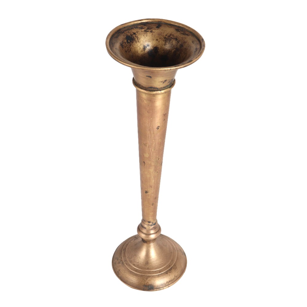 A flower pot or vessel carved from high quality Brass to enhance its appearance. This pot is made by skilled craftsmen with their hands in a english art. It has a matte golden colour with antique finish. Display this aesthetic pot as a flower pot on a table, shelf or altar to enhance the interior design. Its incredible, distinctive design will ensure that it will be a real eye-catcher for your guests. Excellent addition for vintage collectors who want to add a beautiful collectible to their collection.