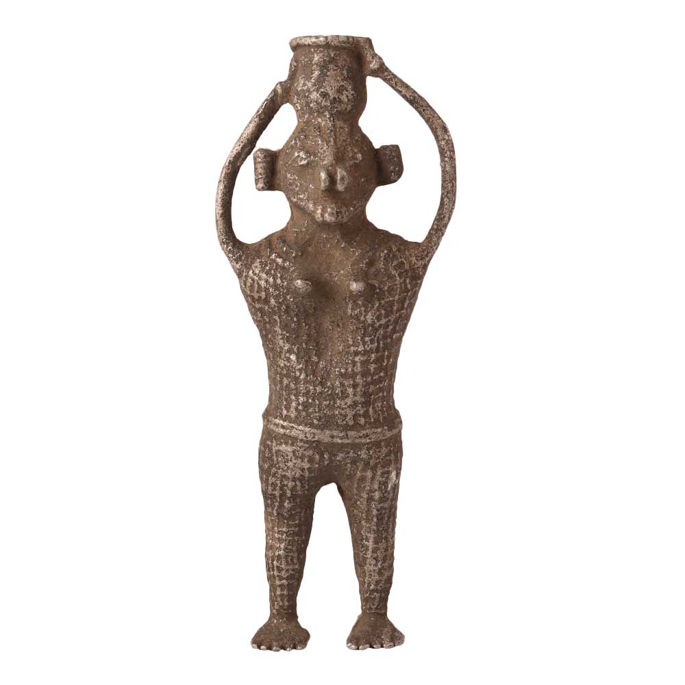 Buy an incredible vintage style statue depicting a woman carrying a water pot on her head. Its faded look makes it an adorable vintage artefact made of high quality brass that will leave a remarkable impression in your interior. Place this Bengal statue in your home to enhance the decor and reflect your rich heritage. This brass statue is handcrafted in tribal folk art to fit your vintage theme restaurant or hotel. Place this eye-catching statue on your table, shelf, desk or reception to add a charming flair to the decor. A perfect gift for your family, friends or relatives on special and festive occasions.