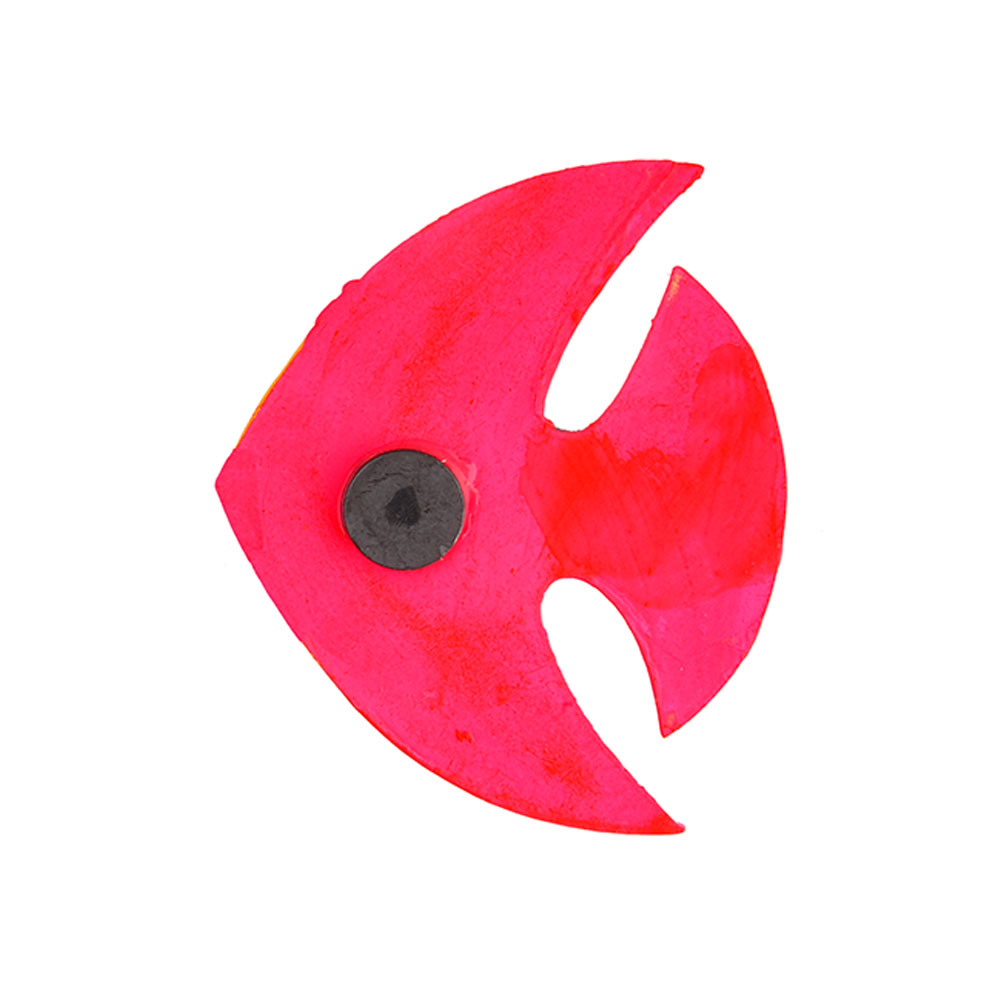 This decorative magnet features a stylized fish silhouette shaped through traditional hand techniques. The engraved patterns and embedded detailing add depth and character while keeping the form visually balanced and expressive.