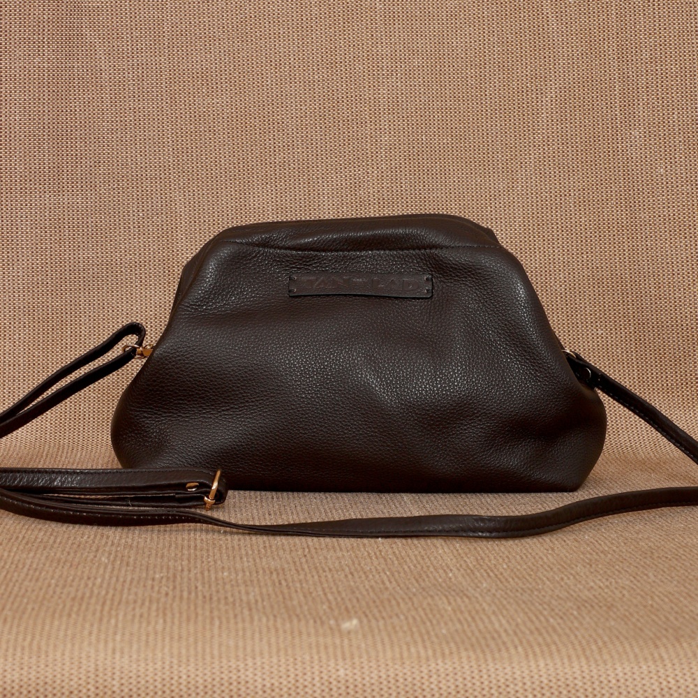 Crafted from lovely Ganache leather, it has a classic metal frame clasp closure, the Slouch Clutch offers a spacious interior with a combination zip pocket and an open pocket with a hanging key chain holder, ensuring your keys are always within easy reach, providing enough room for your essentials. It also includes an extra open pocket for perfect organization.