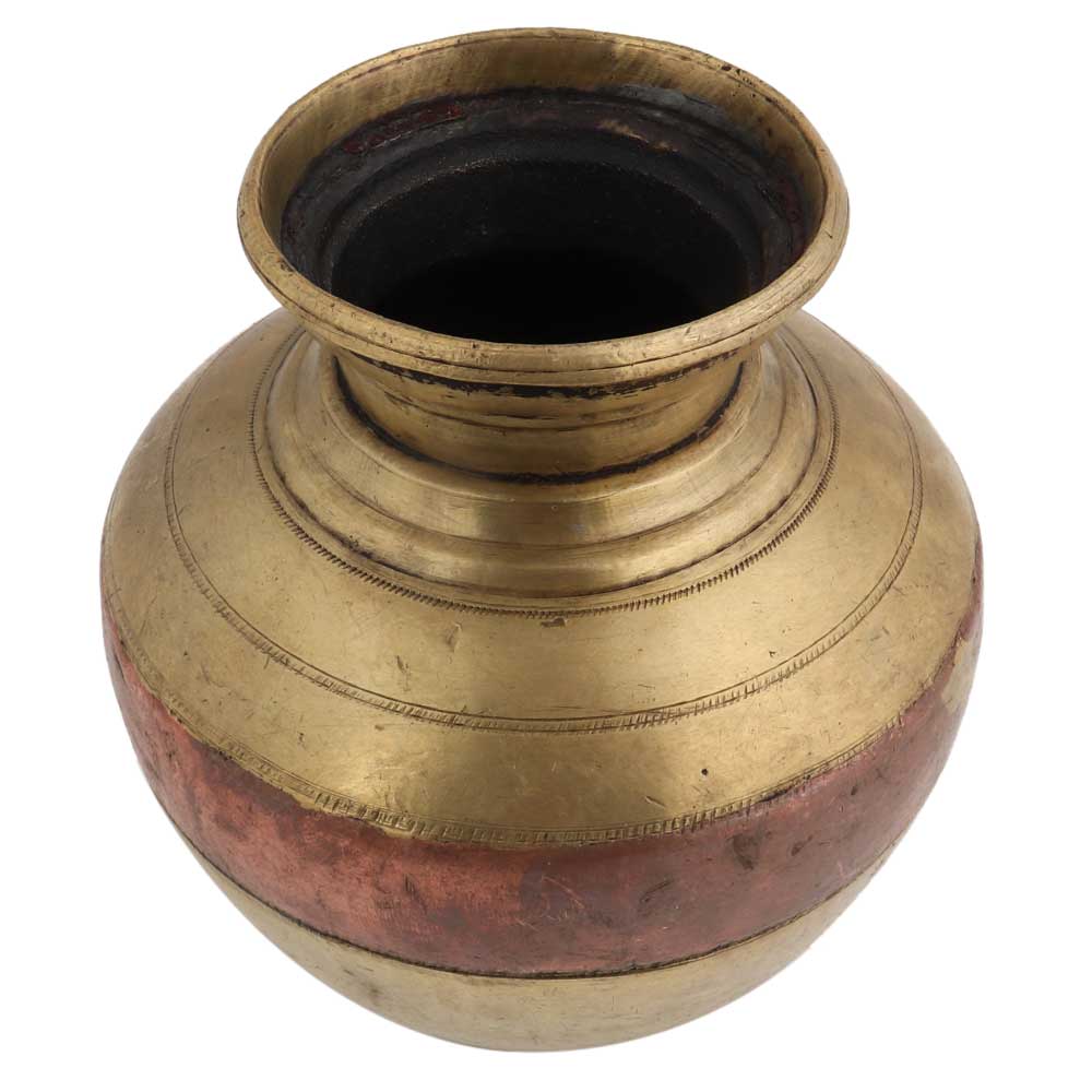 Handmade Ganga Jamuna Lota Vessel Water Pot is made by mixing brass and copper metal together using traditional methods. This unique holy water pot is a Treat for Collectors and Makes for a Wonderful Decor , Stage decoration, Wedding gift, Diwali gift etc.