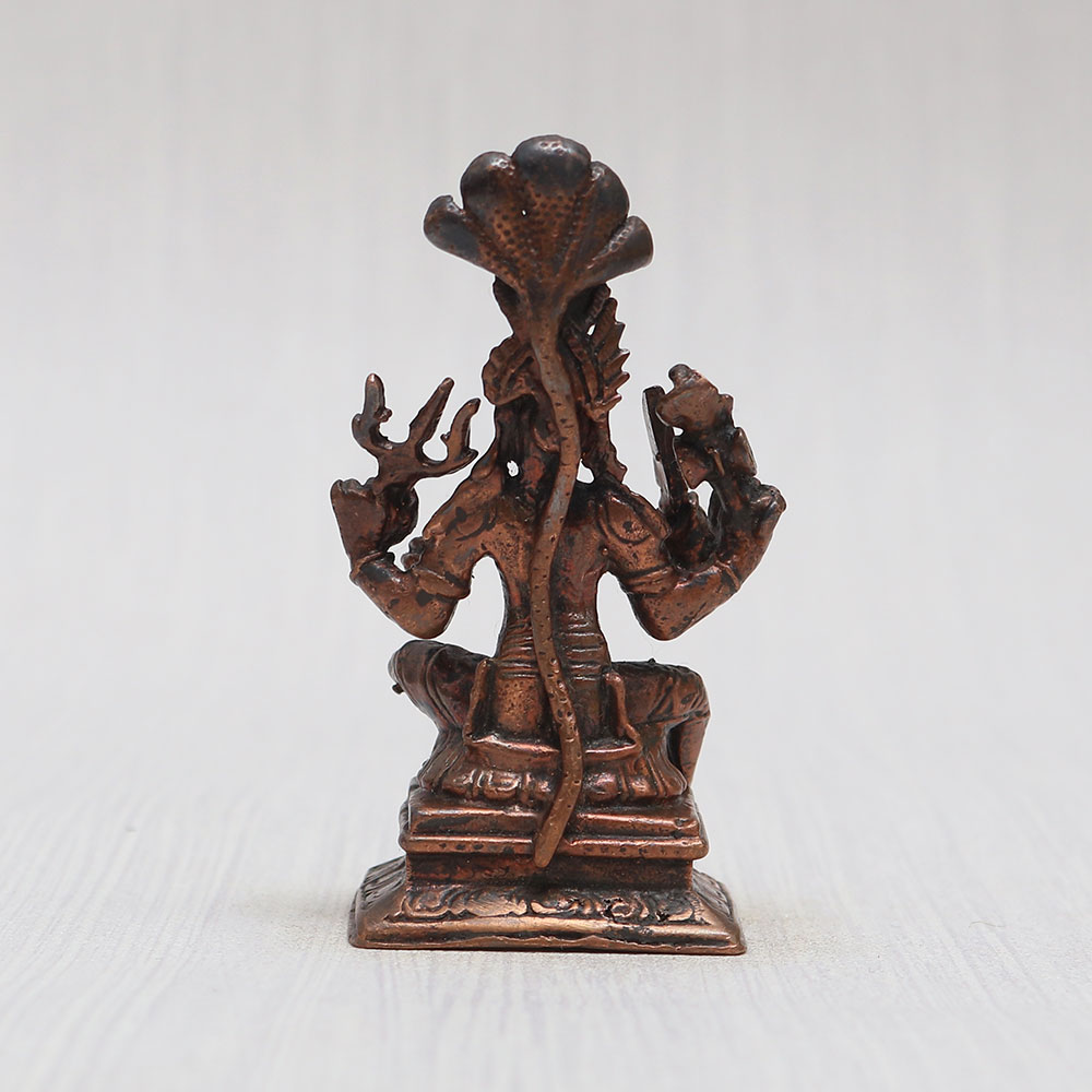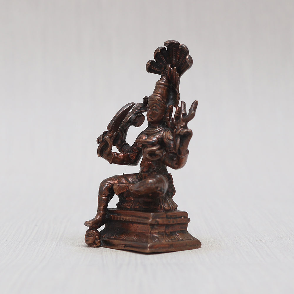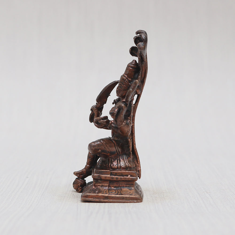Experience the divine presence with our exquisite Copper Goddess Mariamman statue, meticulously crafted by skilled Indian artisans using high-quality copper. The statue boasts a vintage-style finish, adding a touch of timeless charm to any space. With its eye-catching detailing and captivating aura, it's an ideal addition to your prayer room at home, office, restaurant, cafe, or shop. This murti is perfect for exhibitions, decorations, and collections, effortlessly attracting attention with its divine allure. Embrace spirituality as you worship in your temple, where the statue radiates blessings. Not just for personal use, this stunning goddess statue makes a thoughtful and meaningful gift for your loved ones on special, festive, or auspicious occasions.